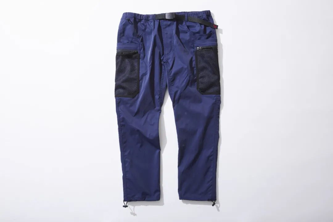作为登山裤祖师爷的小野人GRAMICCI,找上 GRIP SWANY 自然是非常合理的梦幻合作。实际上他们也一直在推出具有话题性的裤装作品。这次,他们又拉上了GO OUT杂志,联合出品了这样一条同时兼具 GRIP SWANY 大口袋和GRAMICCI招牌奔跑小人logo的mesh pocket gear pants。