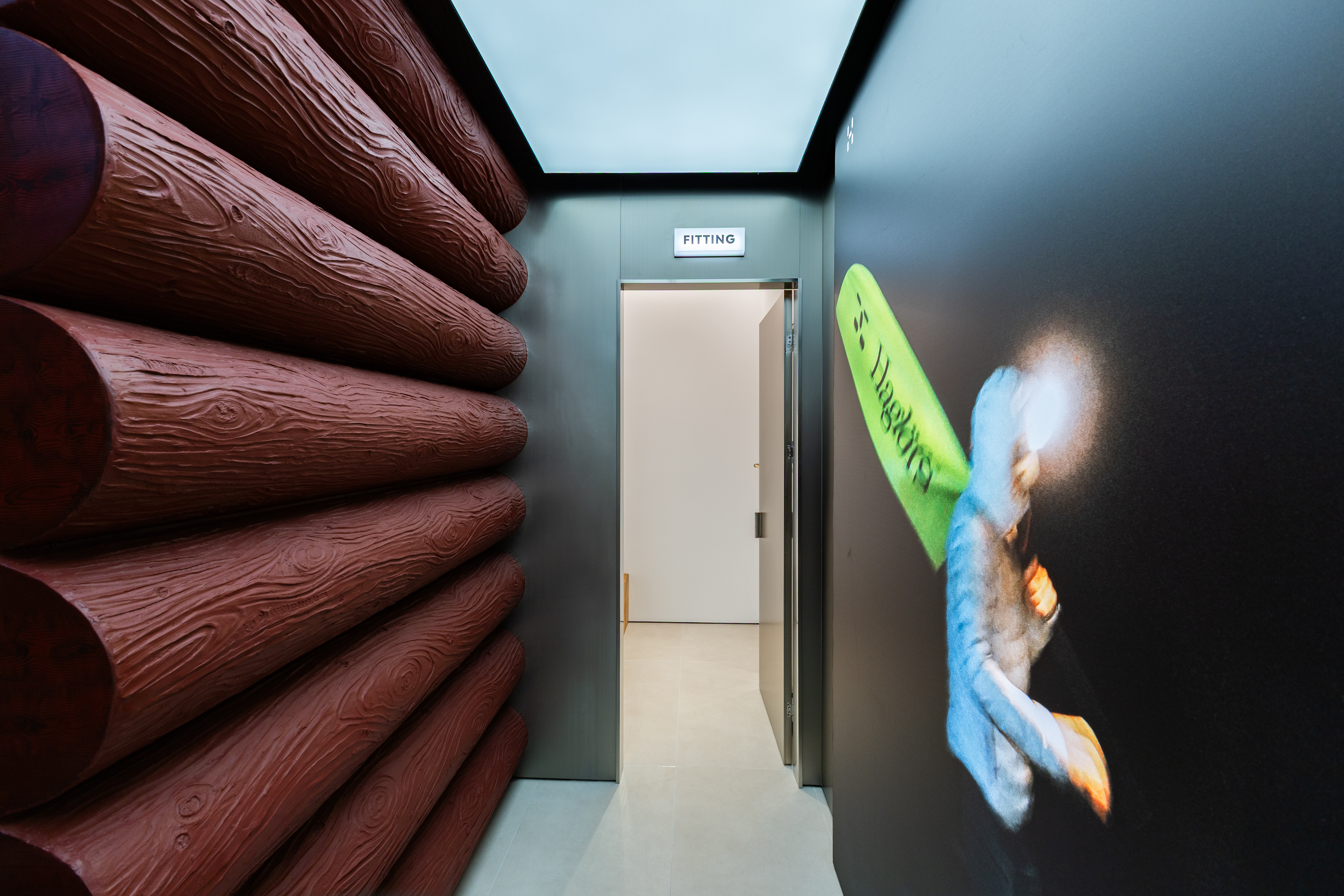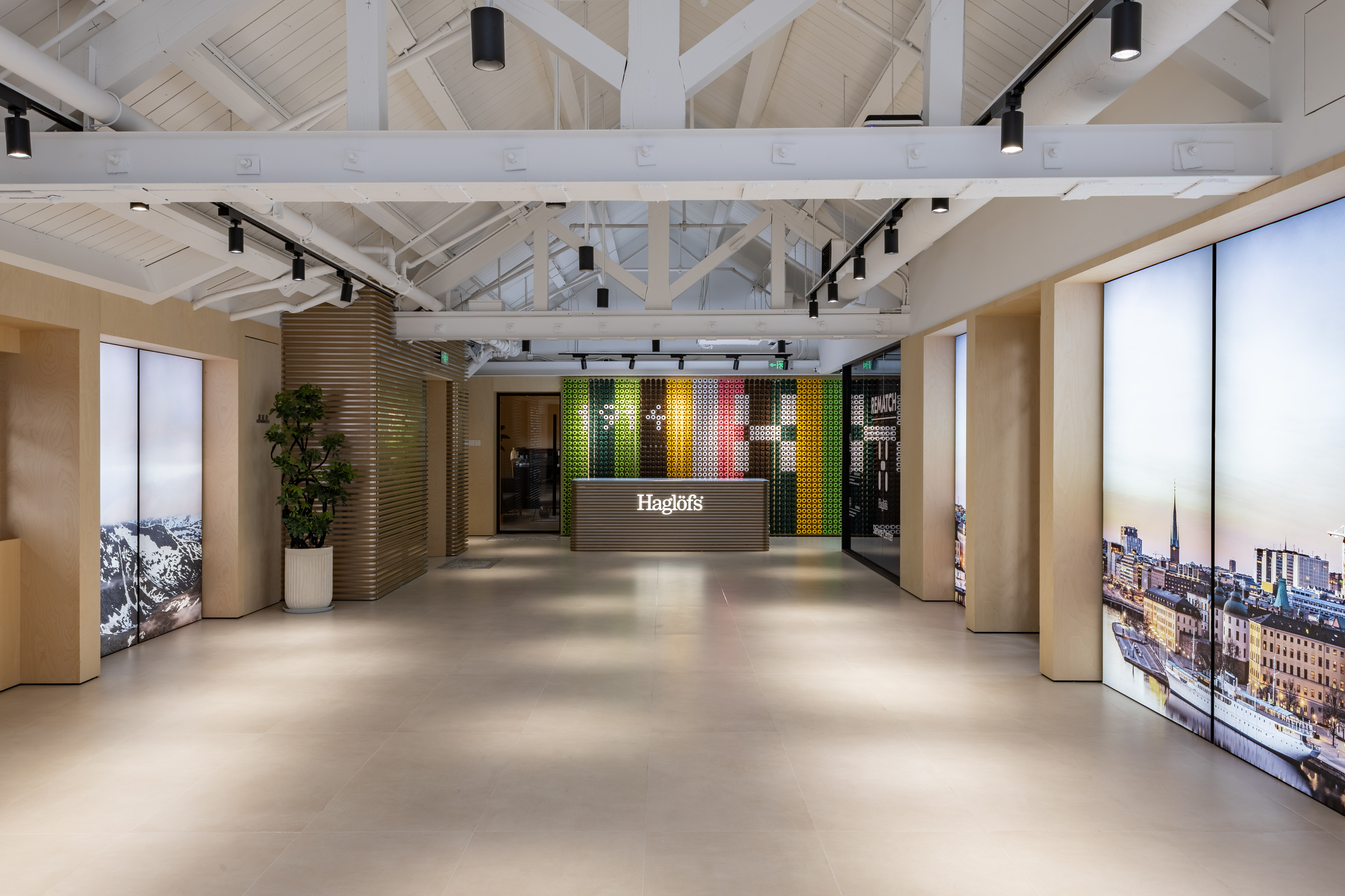 此外,Haglöfs上海旗舰店还暗藏诸多巧思细节:Wheat(麦秸)呼应北欧田野的柔和纹理、Wood(原木)传递瑞典森林的温润温度、Nut(螺母)彰显工业金属质感与瑞典工艺传统、Falun Red(法伦红)复刻瑞典木屋的标志性文化底色,四重元素精准对应品牌“自然 × 森林 × 工艺 × 文化”的瑞典身份内核。
