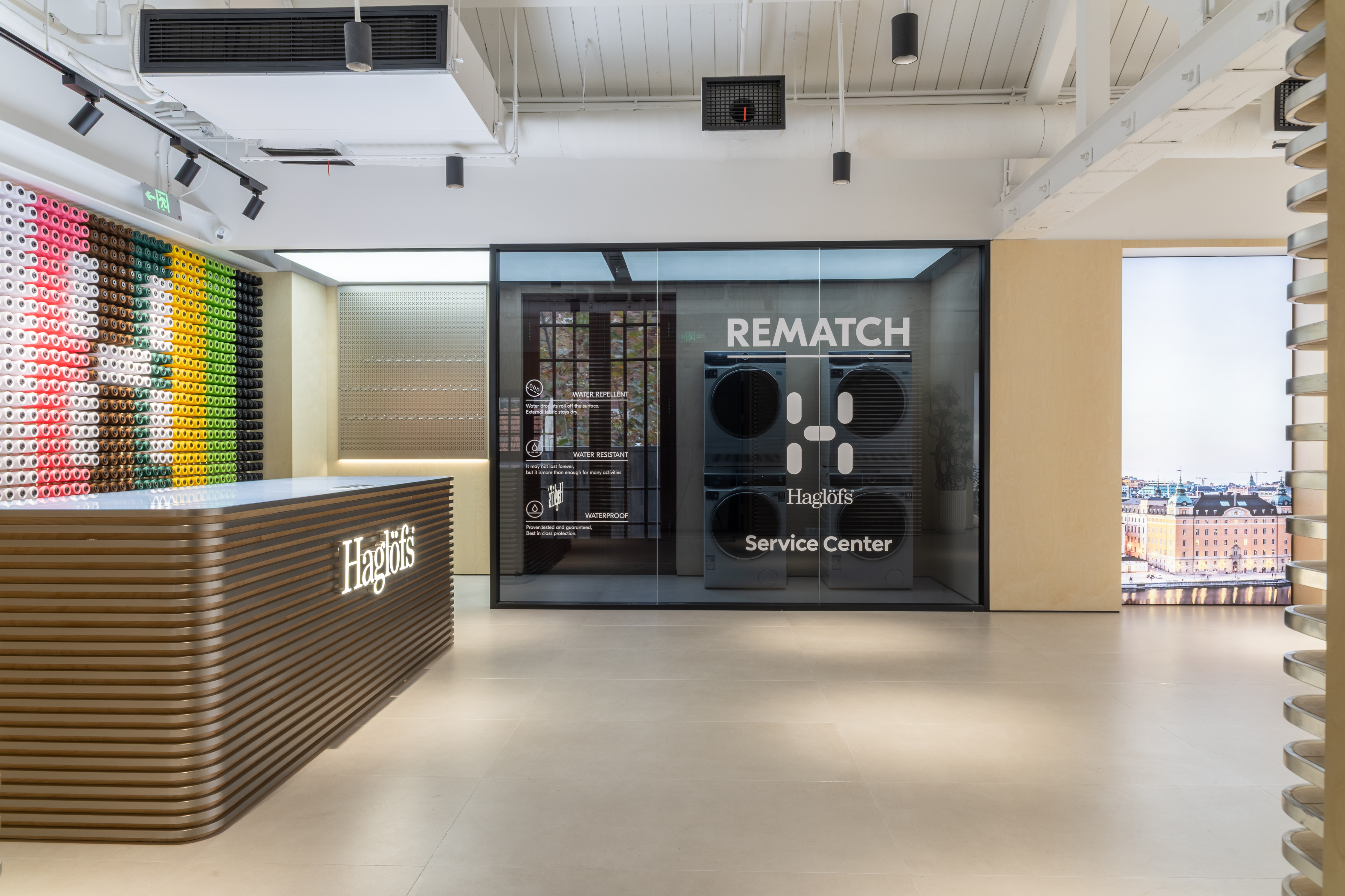 3楼主打ESG Forum(可持续服务空间) 主题,以“城市会客厅”与“共创空间”为核心定位,未来将持续举办北欧文化课堂、城市自然教育、社群沙龙、环保夜话等多元活动。空间内特设专属“装备修复中心”,提供装备现场修复、缝补、保养服务,以此践行Haglöfs的可持续环保理念。修复中心配备瑞典知名品牌Electrolux洗衣机,服务范围并不局限于Haglöfs产品,而是向所有品牌的户外装备开放,核心宗旨在于引导用户珍惜服饰单品,延长装备使用周期,从源头减少资源浪费。此外,这里还将为用户分享户外单品的日常维护与清洗技巧,助力大家更深入地了解装备功能。更多独具匠心的设计细节,期待大家亲临Haglöfs上海旗舰店探索,携手共创全新的环保户外生活方式。