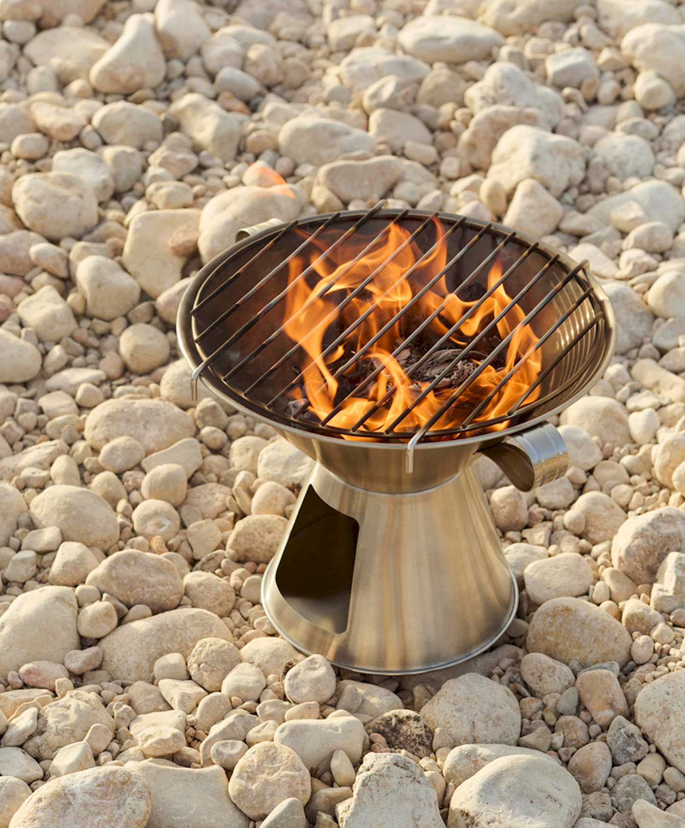 来到户外肯定要体验烧烤,自带烧烤功能的火盆就必不可少。这款火盆有大小两个尺寸,细节稍作区分但核心功能一致,均用不锈钢材质打造,既能为户外生活增添美食料理的乐趣,还能燃烧篝火取暖、烘托氛围。