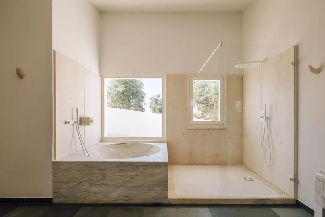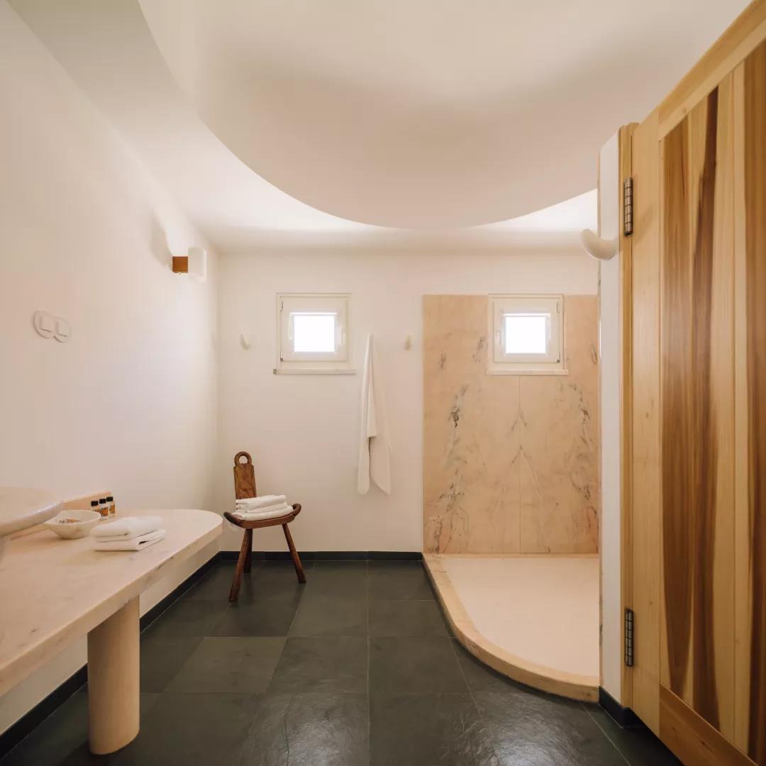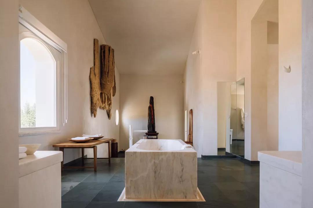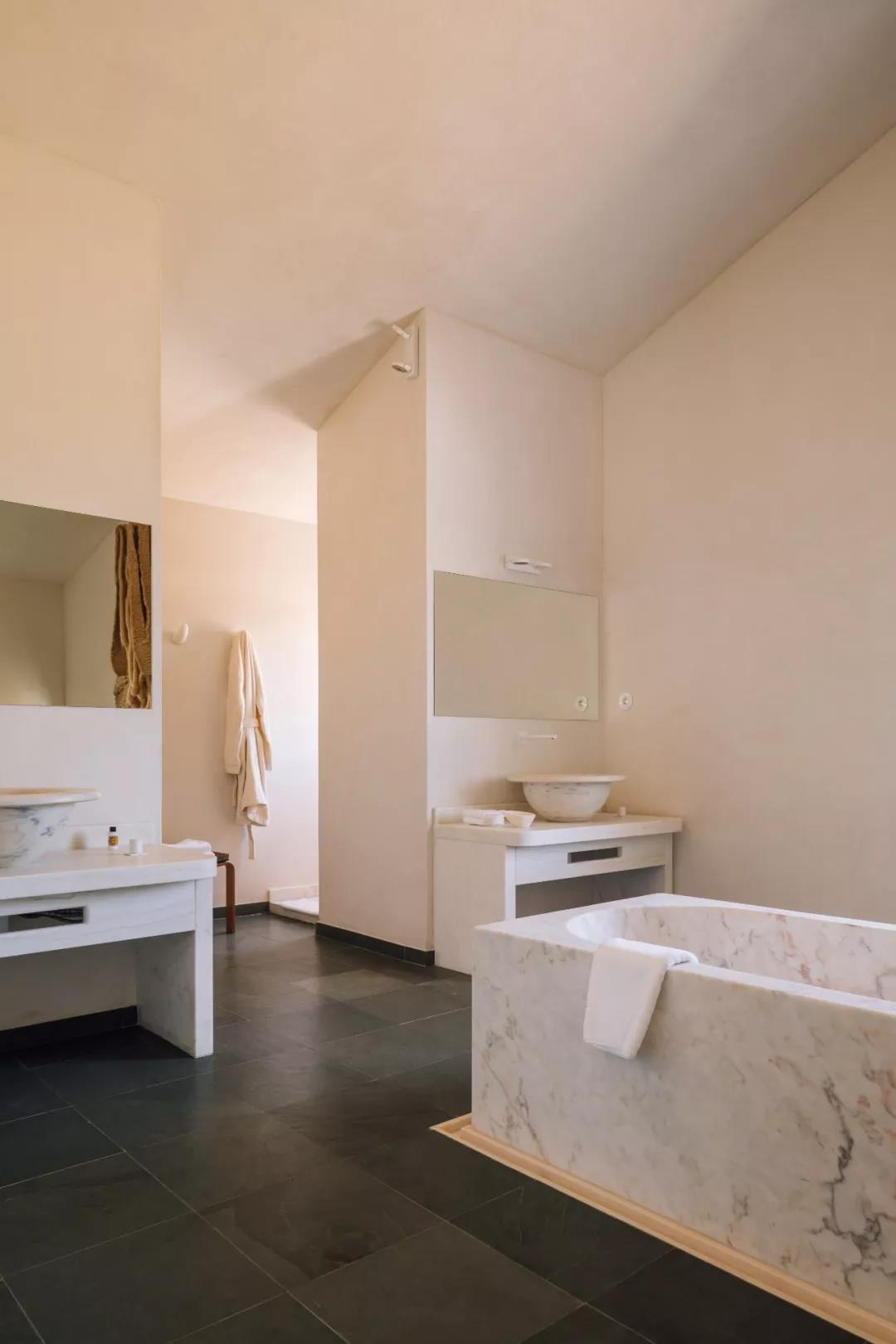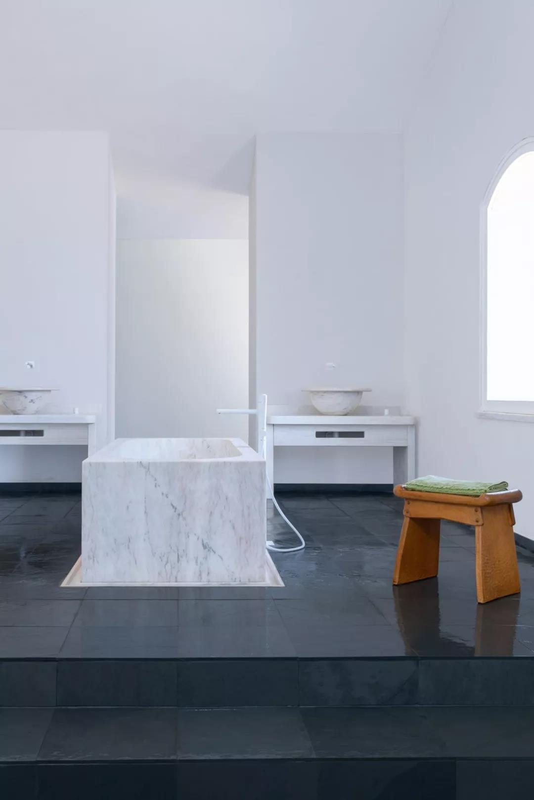 每一间浴室中的大理石浴缸,都由当地最优秀的工匠纯手工打造,足足花了 7 个星期的时间,为的就是给住客提供完美的放松环境。