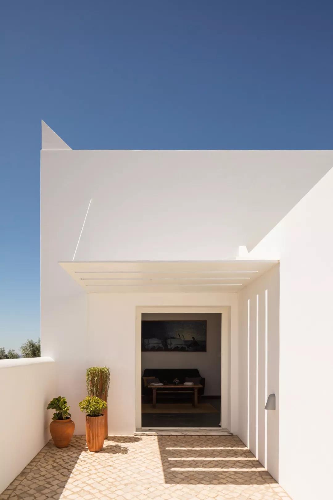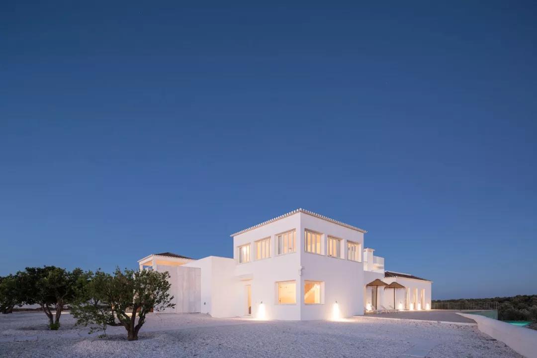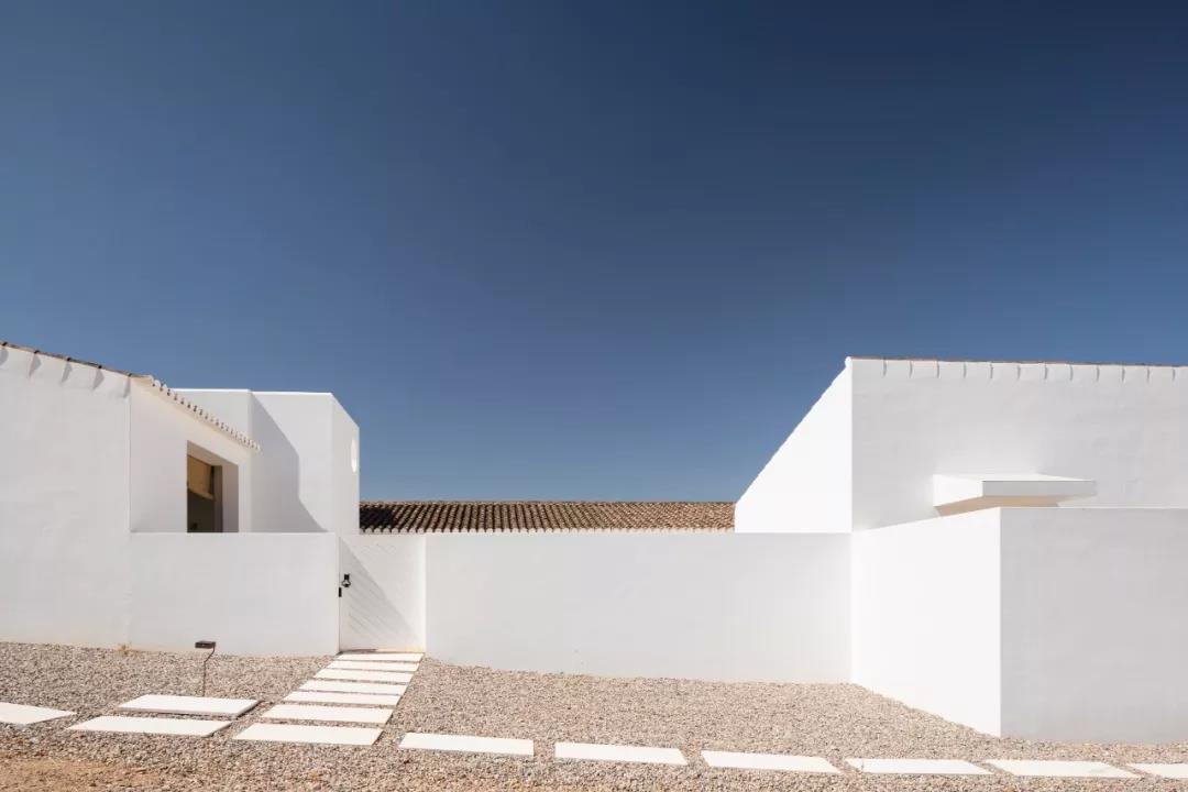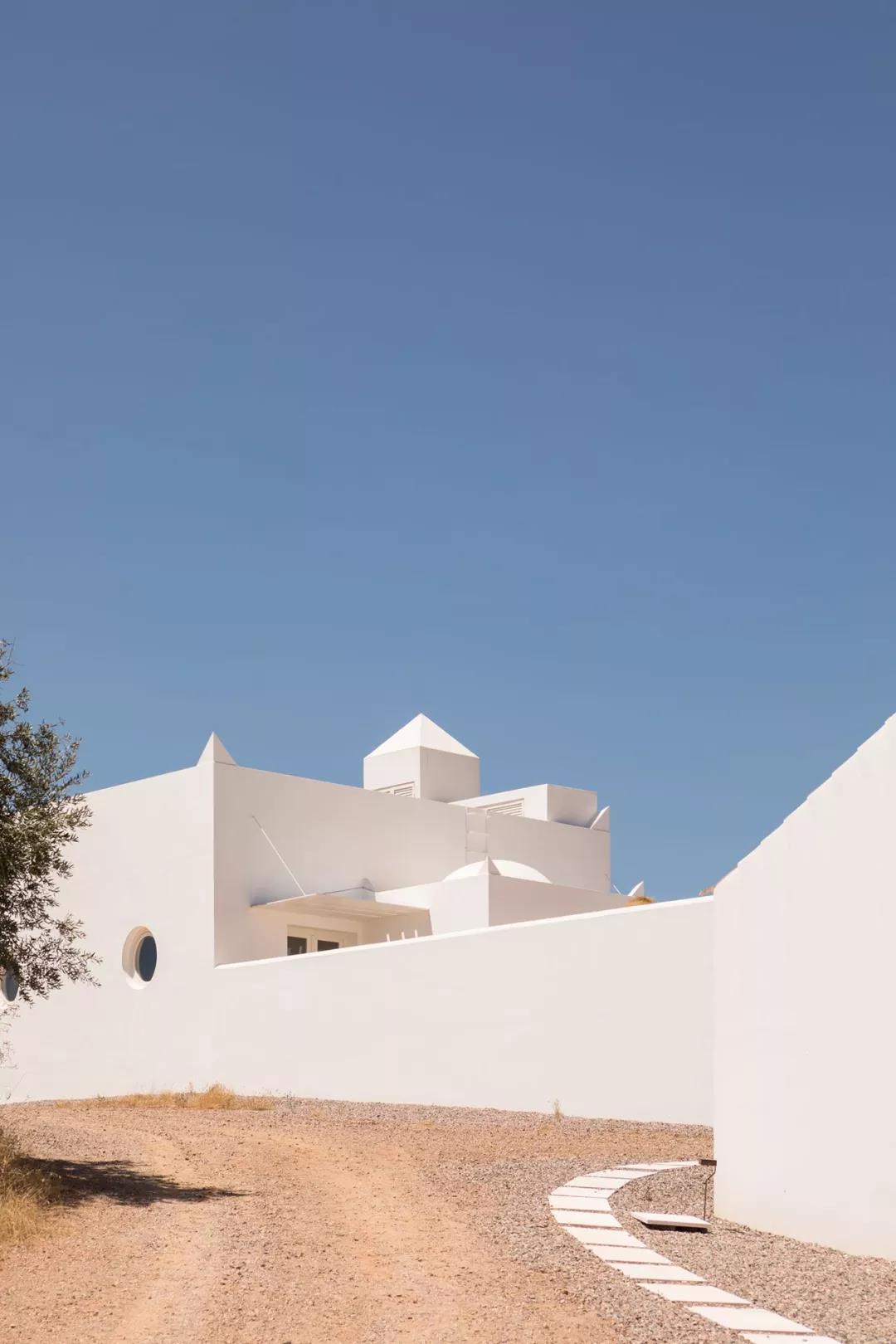 建筑被改造成一个线条干净的现代化静居,同时保留了乡村庄园的传统特征。近乎全白的外观与干净的线条,融合了各种几何形状,体现出了朴素的极简主义美学。