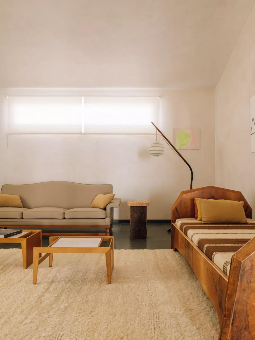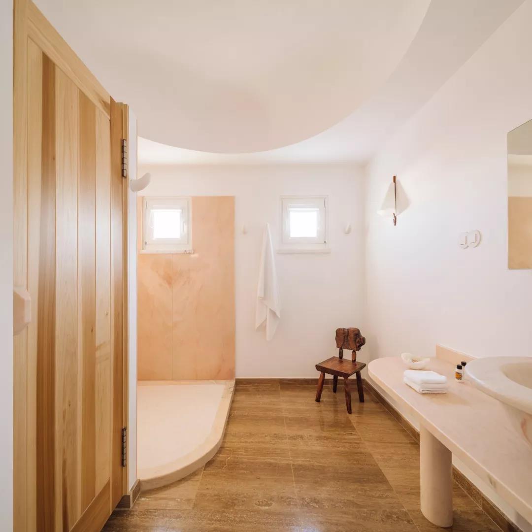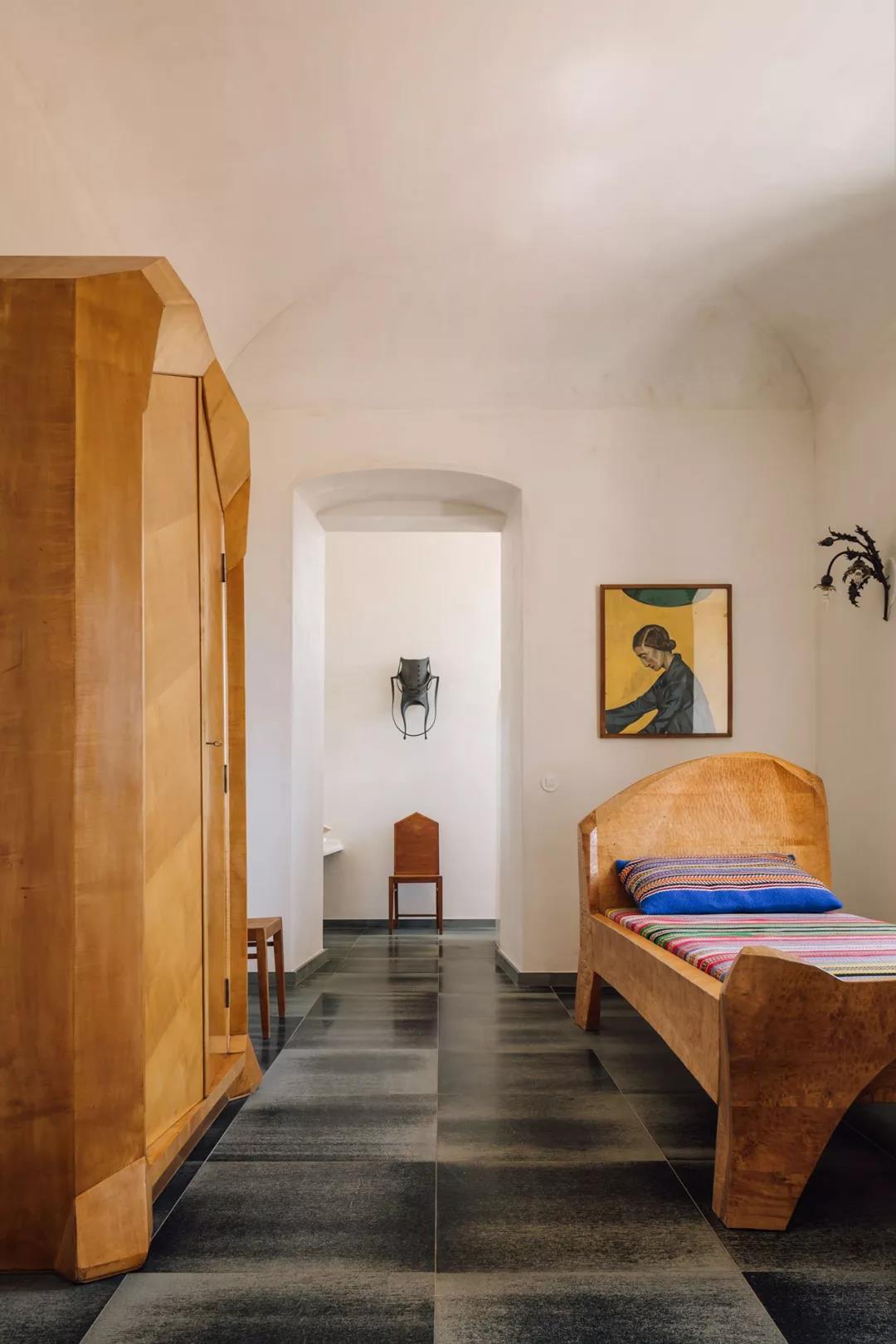 享受能反映金色夕阳的晶圆大理石床单的光线和色彩,Heinrich Eckinger 的室内家具采用 20 世纪 40 年代的 Anthroposophical 风格,营造出宁静与和谐的感觉。
