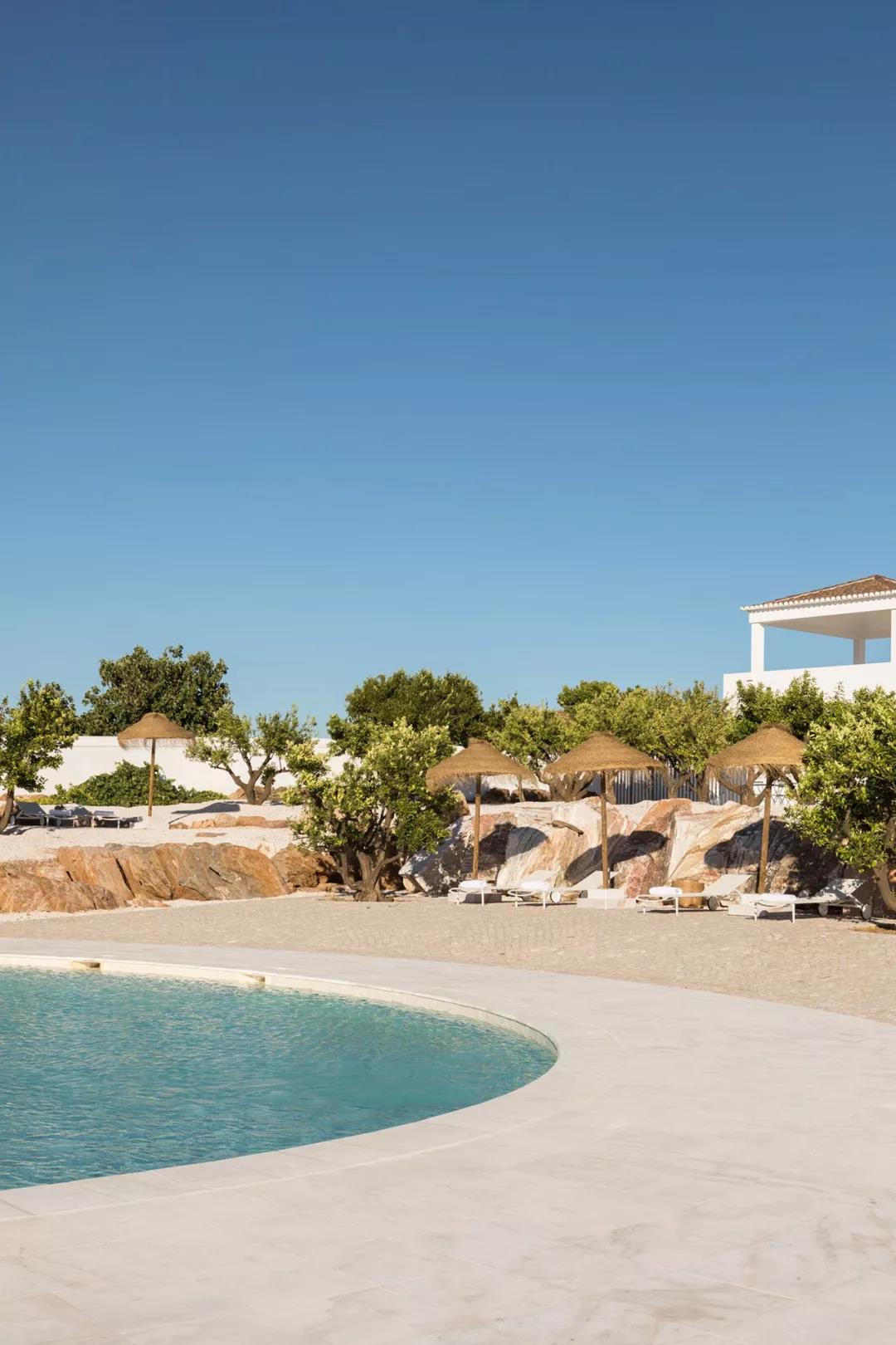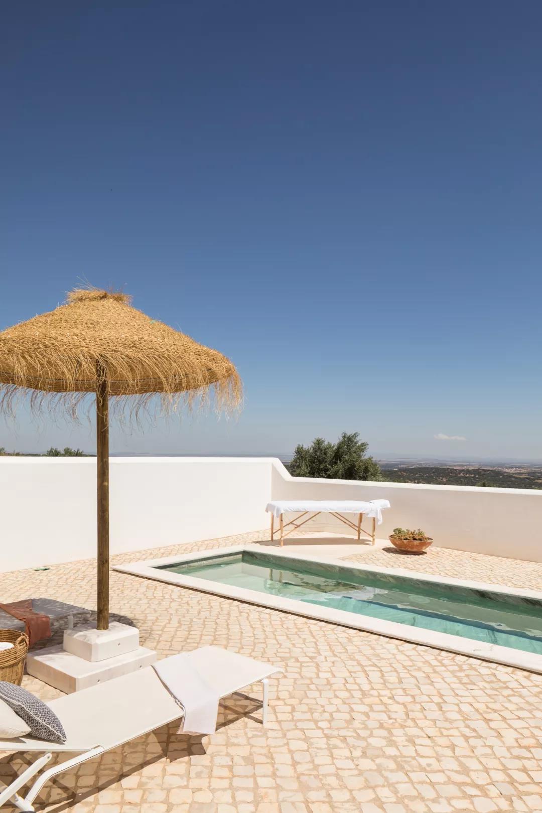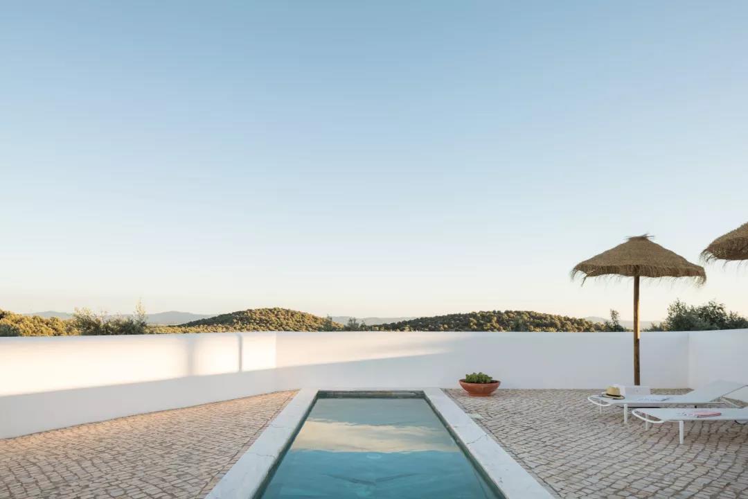 这座套房最大的特色就是它自带的一个小型泳池,它提供了舒适的环境和采用当地手工制作的家具,给人一种徜徉在阿连特茹的自然景观中的轻松氛围。