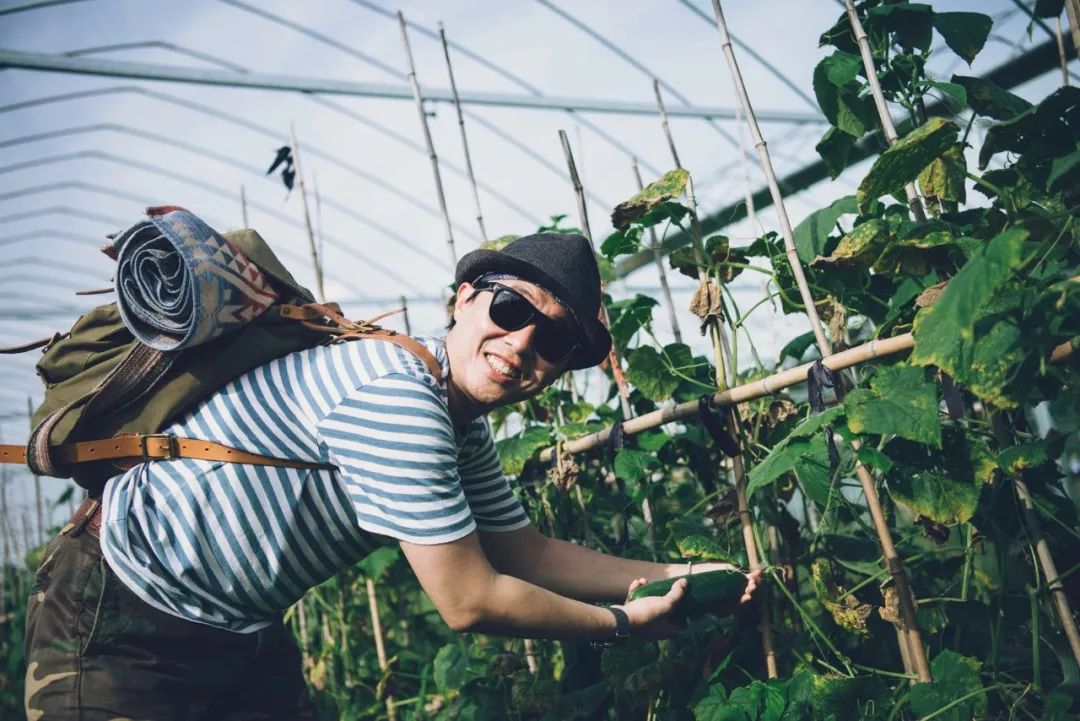 前面塑料袋,后面大背包,要么就是出去露营,要么就是回家做菜