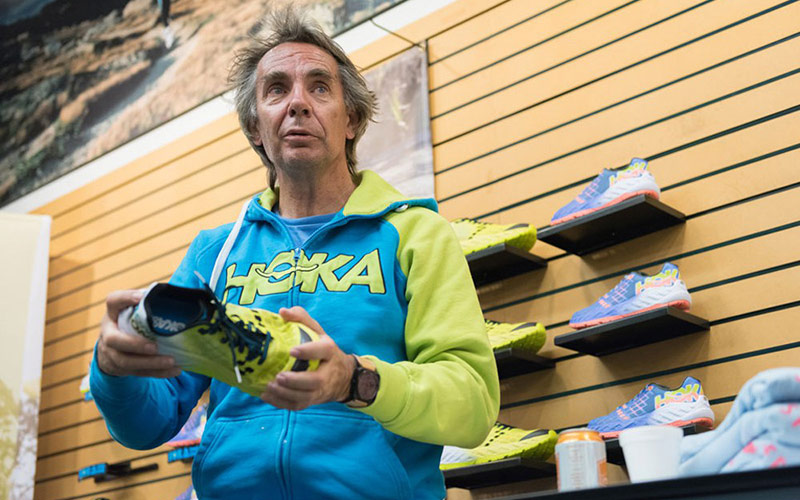 因为成立于2009年的HOKA ONE ONE,恰逢裸足跑风潮盛行的阶段,各家品牌都在尝试更轻薄极简的跑鞋设计,但两位创始人Nicolas Mermoud和Jean-Luc Diard却坚持己见,反其道而行,用厚实的中底,巨大的鞋型为特点进行跑鞋的研发。