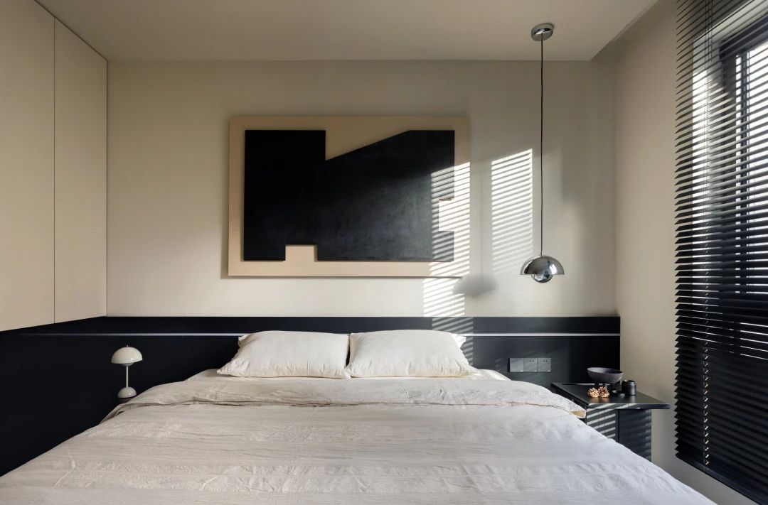 小户型减少色系搭配,会让空间看起来更完整统一,达到视觉上放大的效果,同时元素之间进行合理面积的呼应,会更有简约高级的质感。