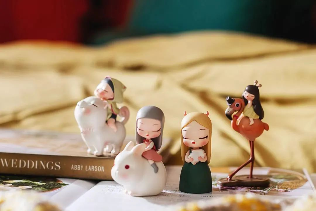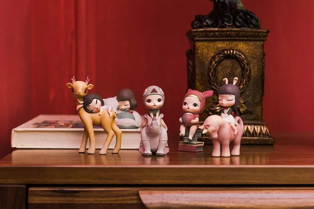 新款lite系列,犀牛伙伴、小书虫的小女孩眼睛已经睁开,不再是之前安静的状态,整个变得活泼、俏皮了。小女孩和灵狐依偎在一起,感觉非常舒适的样子;犀牛伙伴,骑在犀牛的背上,准备来一场冒险之旅。小书虫和独角兽也出了迷你款,和大款摆件是不一样的风格。温馨的祥鹿系列依旧很治愈人心,小女孩趴在小鹿的脖子上安心的睡着了。