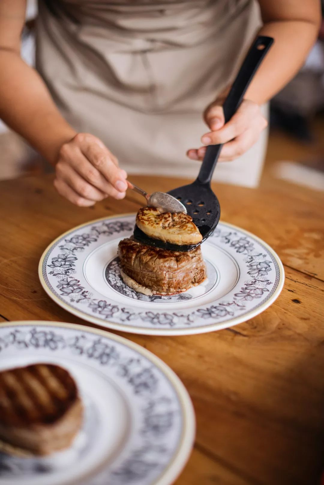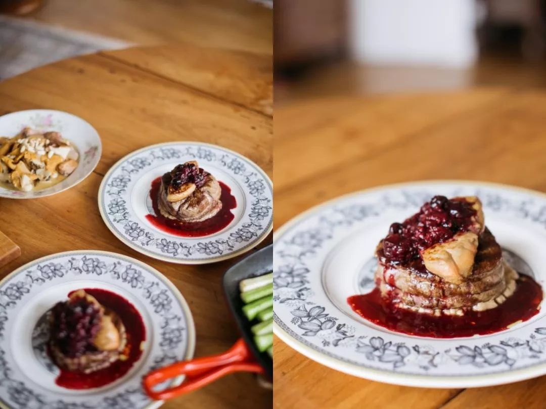 罗西尼牛排有三个元素——菲力、鹅肝、松露。但为了节省巴黎的旅行预算,我用的是松露酱,kuai一勺抹在盘底,码上牛排和鹅肝。最后浇上秋日风味的红酒浆果酱,罗西尼牛排完成!