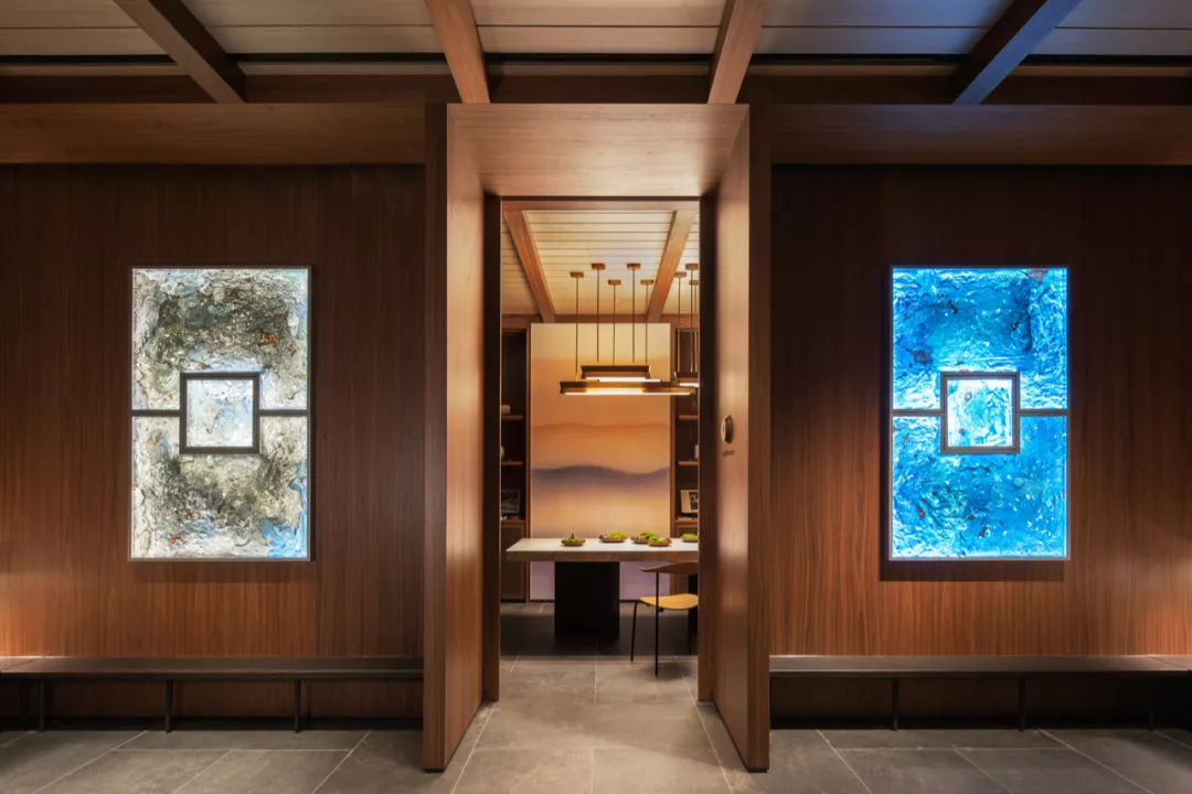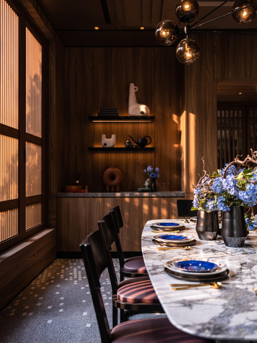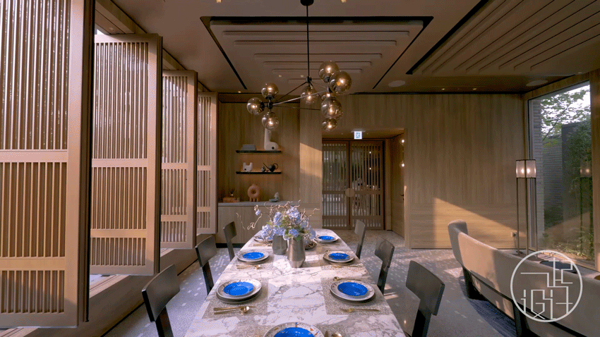 同时以中国一日四时的「朝、昼、夕、夜」作为功能划分的概念基础,传达从黎明到白天,从黄昏到夜晚不断变化的光影时刻,呈现审美秩序和对称美感共存的空间层次。
