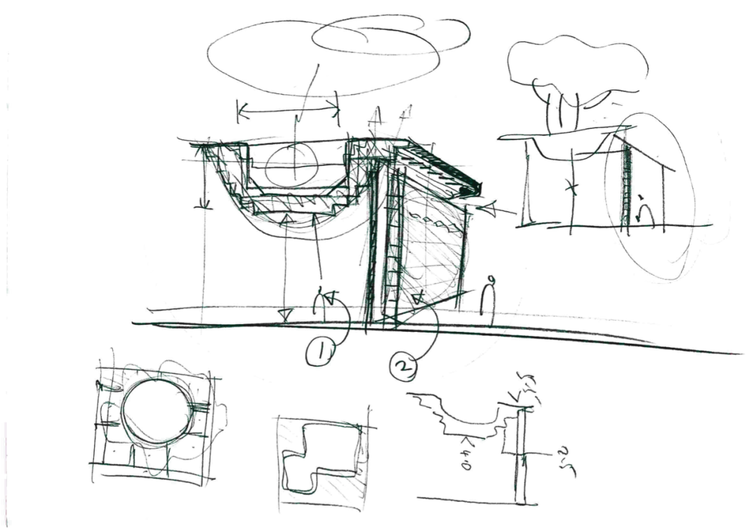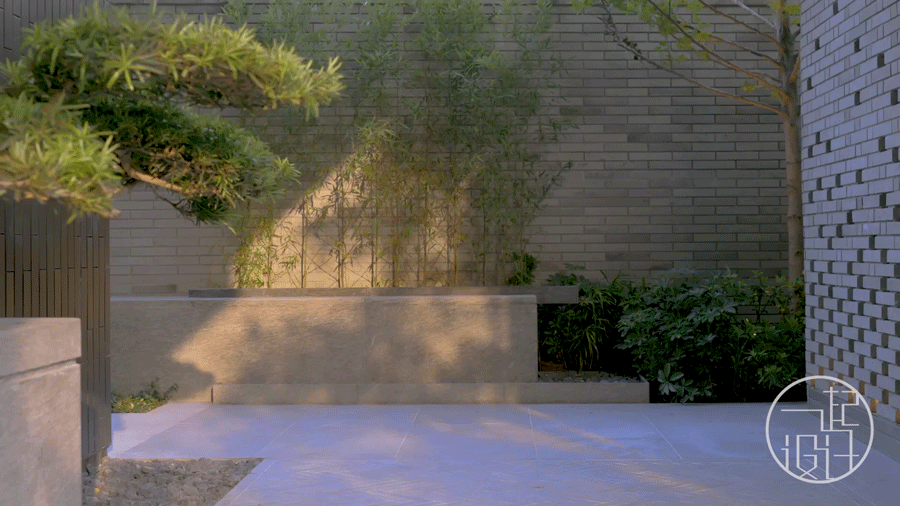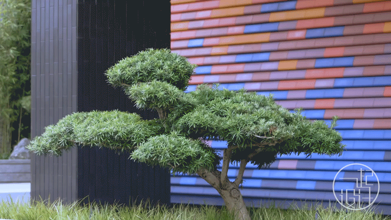 砖砌“亭”的层叠屋顶作为树木的大容器高低不一,错落有致。