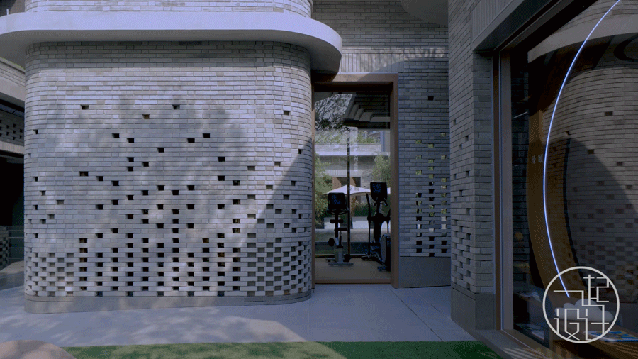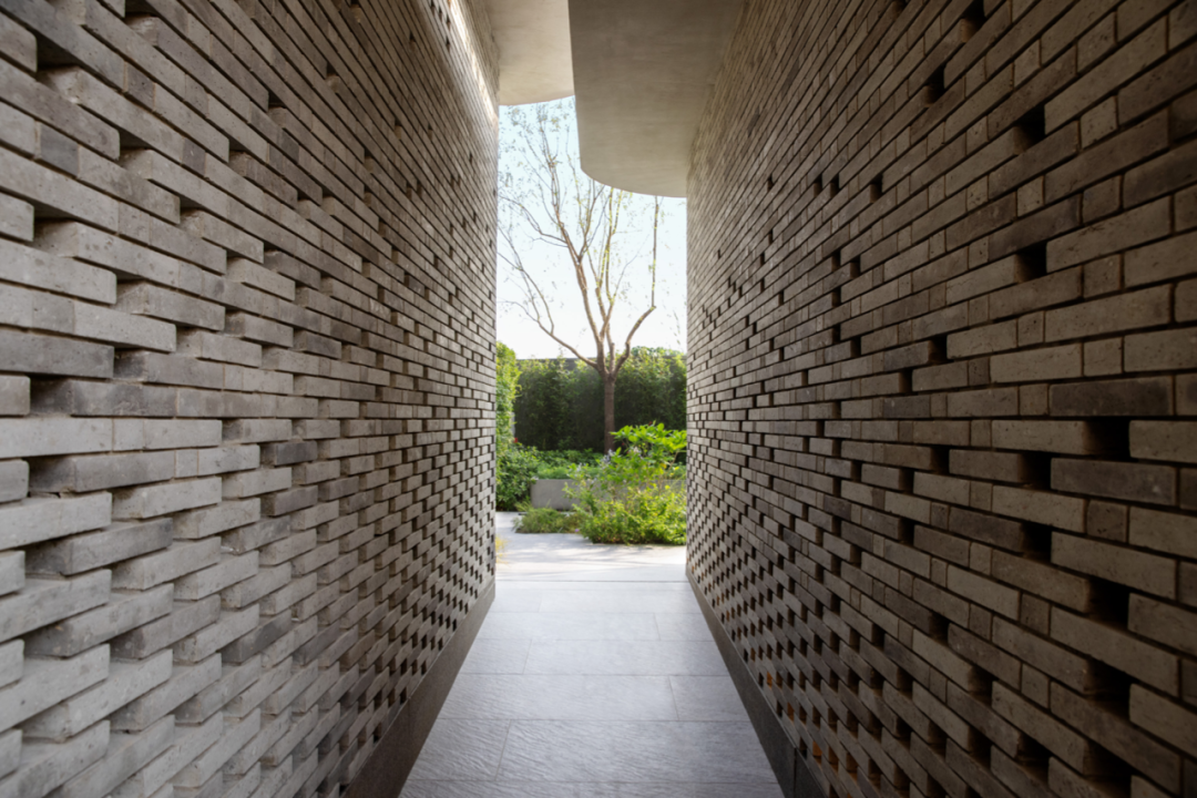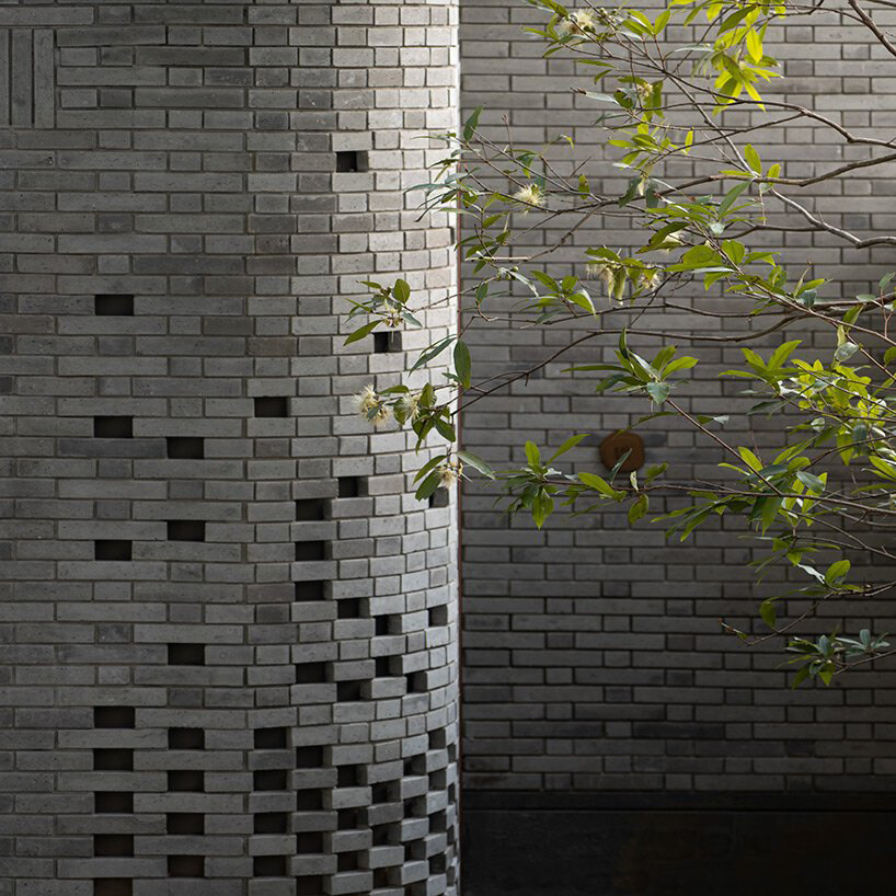 外立面的青砖开口自下往上、由密至疏排布,独具韵律美感。