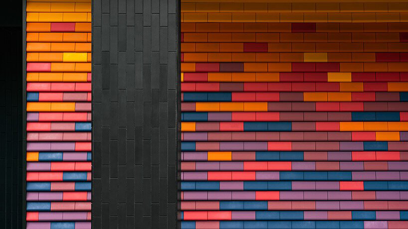 进入大门,人们即被横跨整个门厅数百块金属板组成的特色墙所吸引,这些手工堆砌的面板色泽丰富,类似于传统的屋顶瓦片,底部组块还兼做住户邮箱,实用之余也美观。