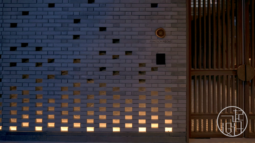 青砖外墙内侧设隐藏暖光透过立面开口向外界渗出▽