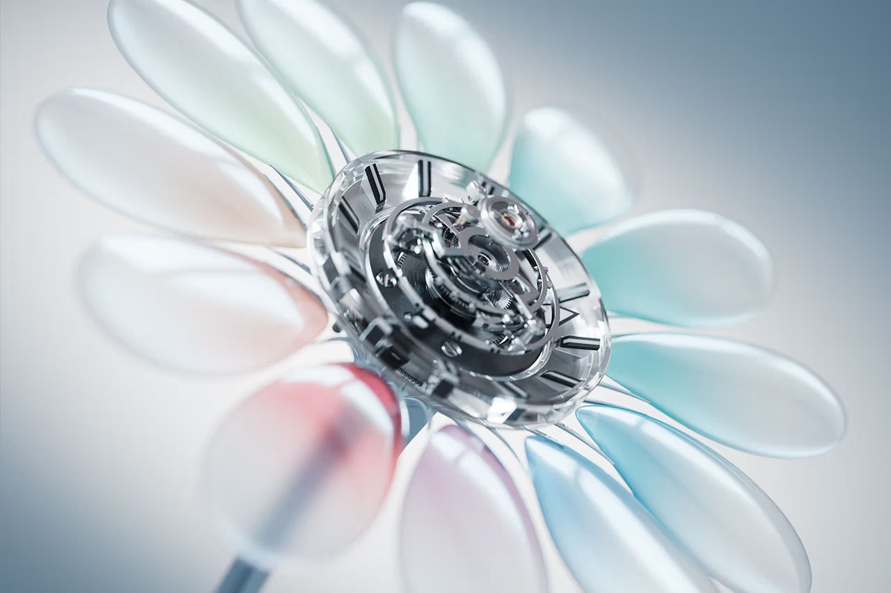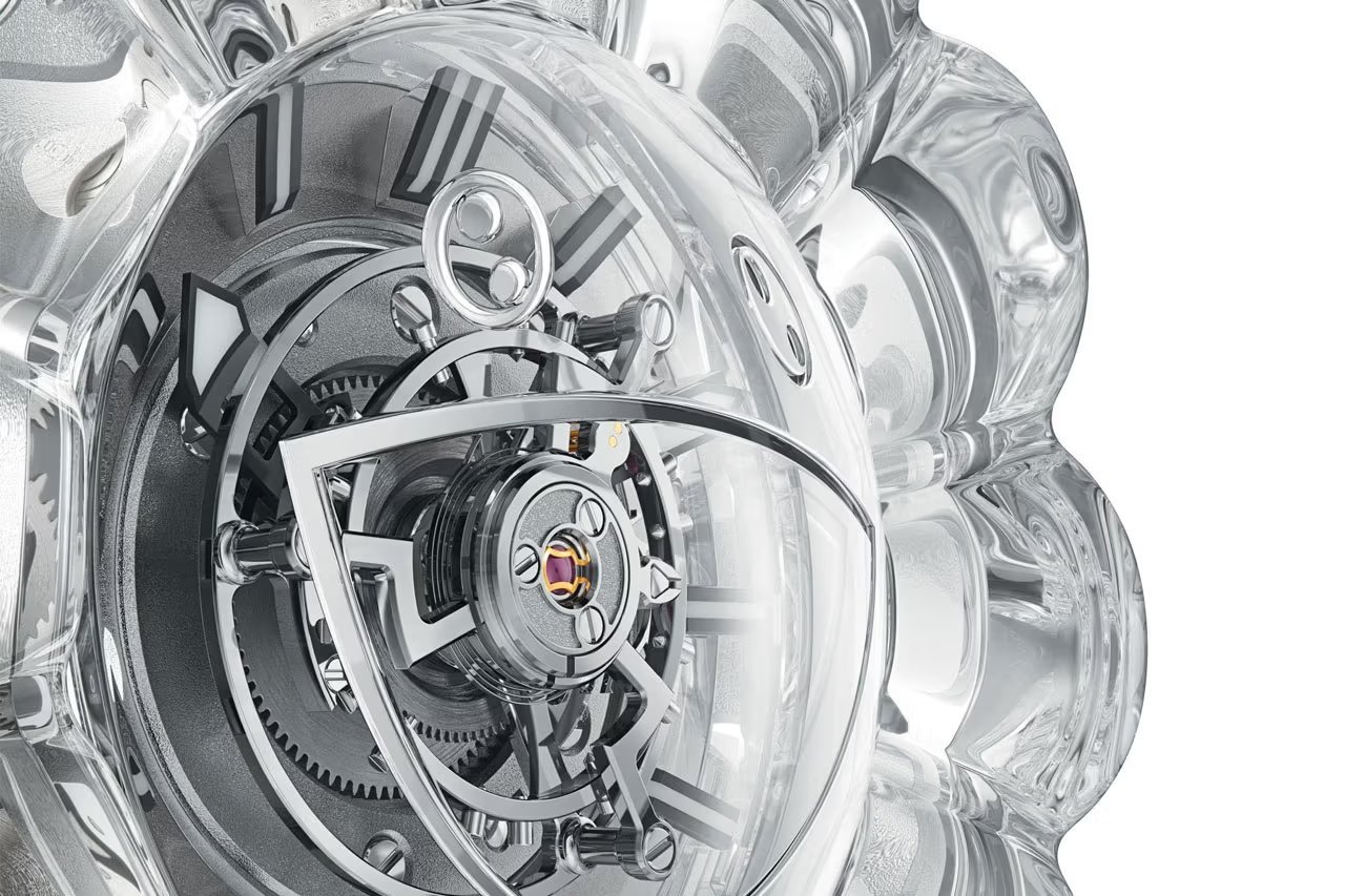 作为限量版,MP-15 仅发行 50 枚,以进一步彰显中央飞行陀飞轮的魅力——没错,这也是宇舶表首款中央飞行陀飞轮腕表,将表壳、机芯和表盘融为一体,从而形成一个独特的无缝实体,在陀飞轮周围遍布村上隆标志性图案:完全由蓝宝石制成的 12 瓣花朵。42 毫米 MP-15 完全透明,配备蓝宝石表壳、底盖、表冠、半透明凸缘和表带。值得注意的是,MP-15 的中央飞行陀飞轮具备 150 小时动力储存,随附专门设计的 USB 充电手写笔,用于为腕表上链。尽管是全透明,但村上隆的俏皮风格贯穿于手表的机械结构,由于采用镂空组件,佩戴者可以畅通无阻观察到腕表复杂的运作情况。Hublot x Takashi Murakami MP-15 售价为 300,000 瑞士法郎,可通过制表商官网了解详情。