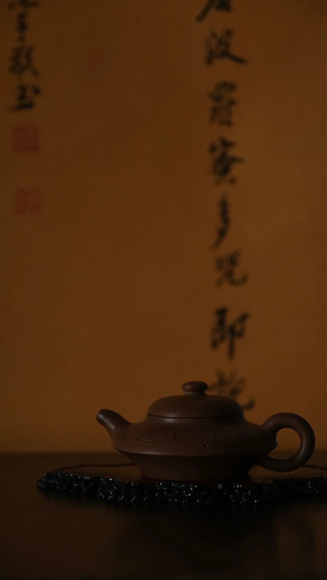 左-清代子冶款刻风竹诗文紫泥合欢壶/右-客房里的张充和书法