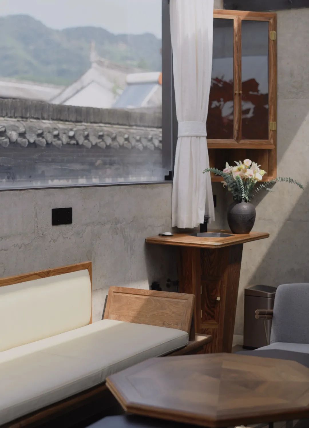 空间格局、木构雕窗、生活起居、古建细节,等到空间的秉性一步步清晰,最后再点缀上灵动的艺术藏品,文郁堂的整体空间才算基本完成。而空间中的盆栽、中式插花、摆件……便等着日复一日地悉心雕琢。