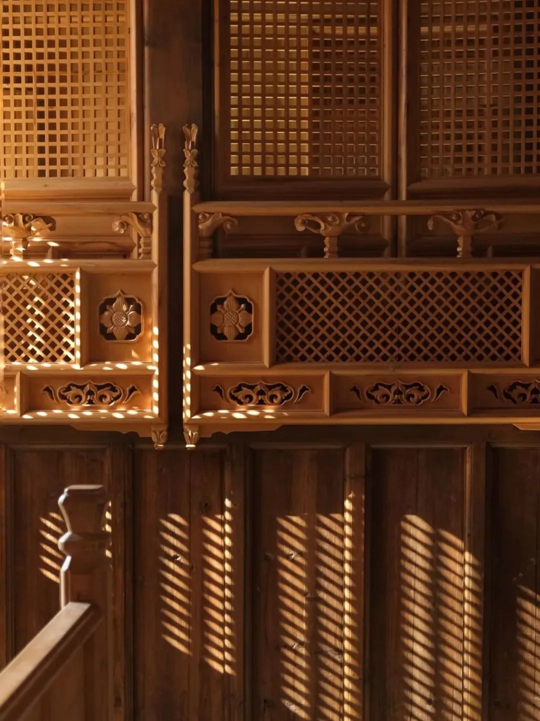 文郁堂“老白果木”雕刻的门窗、栏杆、板壁很好区别,因为全部是由有经验的老师傅重新手工雕刻而成,在视觉上依然是明显的浅白,等到时光流转,文郁堂又将呈现另一种时光的味道。