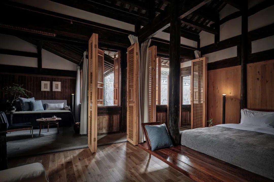 文郁堂的酒店主体,是两幢跨越几个世纪的明代古建筑,虽古旧破败,却是妥妥璞玉一块。不必说太多细节,只需知道,主理人先花十余年梳理徽文化、遍寻配件藏品,再花5年隐居呈坎亲历修缮,便知文郁堂值得。