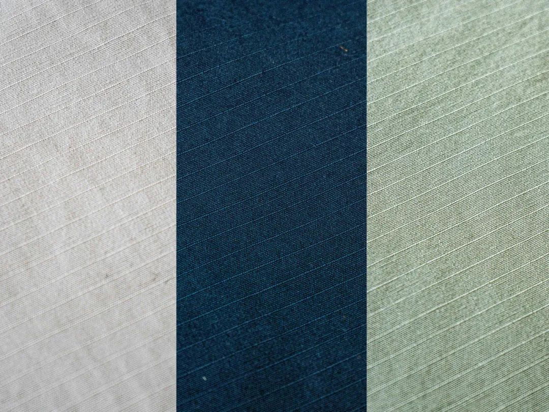 抗撕裂面料在编织的过程中,增强了纱线的交叉影线以规则的间隔交织,由纤维排成的格状结构在面料的表面也清晰可见(所谓的格纹布),将较粗的纱线交织在较薄的布料中,因此产生了二维的结构。而这样的结构在破损的时候,破面会停止在格纹结构里,阻绝撕裂扩大,也是”RIP STOP”这个名字的由来。这种扎实的面料就算经过洗涤也依旧柔软舒适,可说是一种可以养的面料。