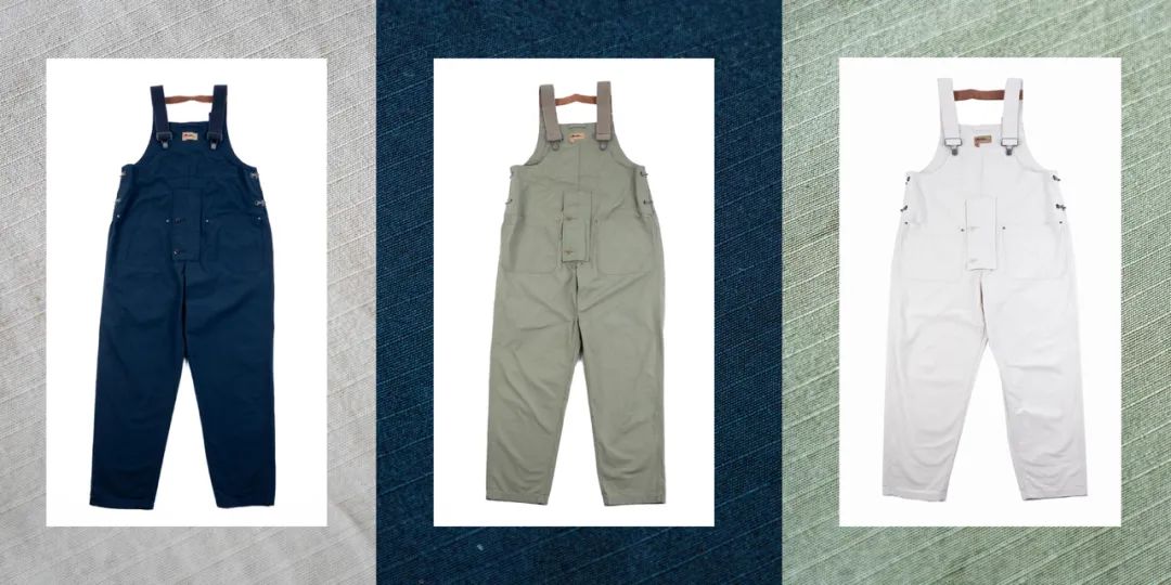 Factory Dungaree 是 LYBRO Naval Dungaree(也就是最热门的Nigel Cabourn单品之一,两侧有两个大口袋)的改良版,它融合了美国 Convoy 甲板围兜(Bibs)的元素和经典法国工作服夹克的口袋设计。三个加固贴袋、一个内部胸袋和一个隐藏式零钱袋的设计提供了充足的储物空间,功能性虽不如Naval Dungaree,但在这个钱包已经消失了的时代,绝对是够用的。它还有多个金属夹扣,这种扣件最初是为了在寒冷的天气条件下,不必甩掉手套就能把背袋裤脱掉。