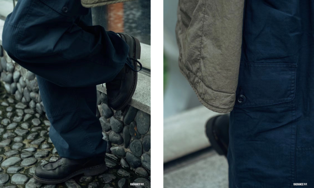 Nigel的所有产品之所以能稳稳地站住脚,因为每一件都是有迹可遁的、都有过去的历史可以支持、不是凭空想像出来的,从昔日军工装的设计中生出来的一套美学,包括版型、面料、五金、设计细节,每一步都有原因、都能自圆其说,更别说已经围绕着这一套做了那么久。