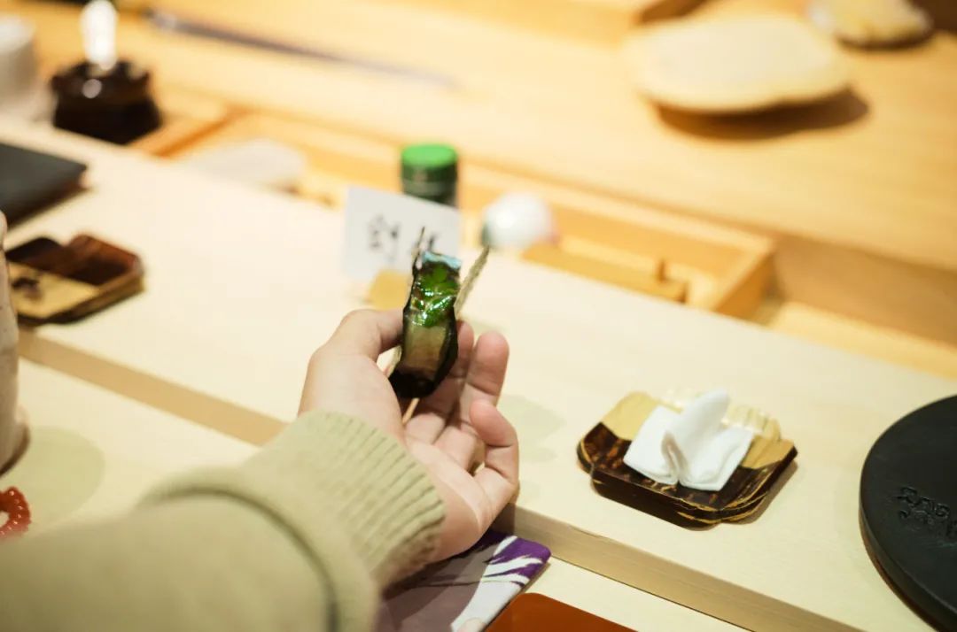 一餐吃完,青木对口味的把控越来越精妙,对食材的思考和季节的尊重之余,还有审美的门槛;不是说摆盘好不好看,而是更内敛的表达,这也是上层日料师傅的分水岭。