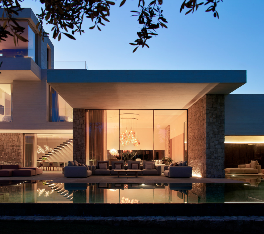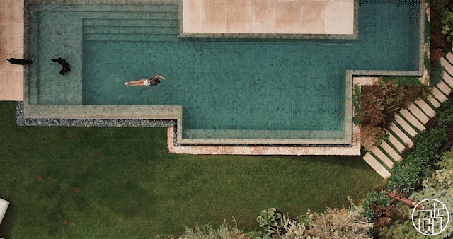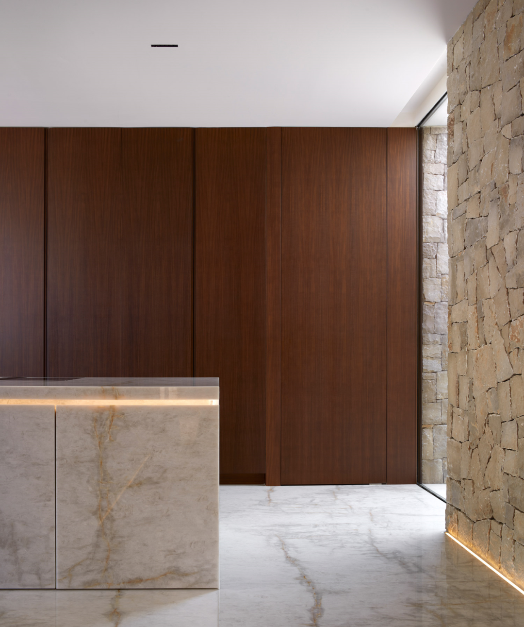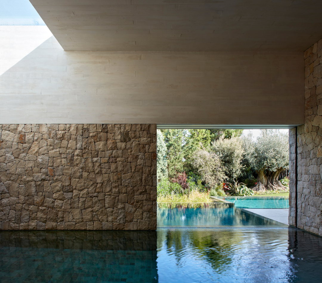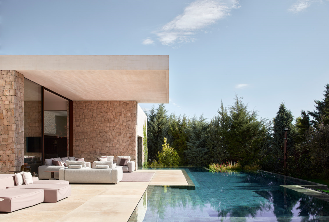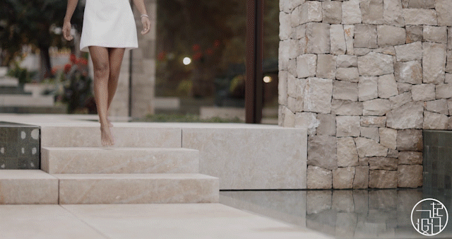 大体快的石墙与泳池的和谐组合,带来了简约的奢华感▽
