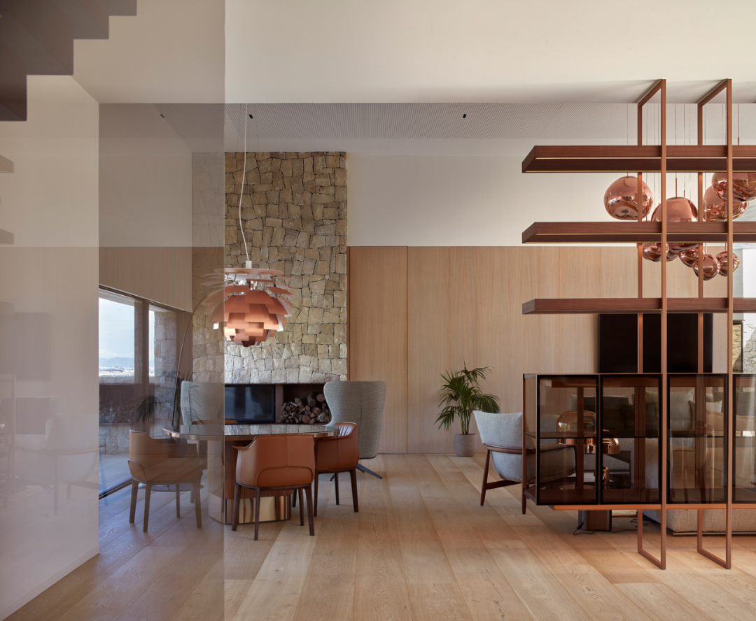 位于客厅旁边靠窗区域,打造了一个小的休闲空间,石墙与真火壁炉的结合设计极为和谐,为室内环境增添了几分宁静、惬意。
