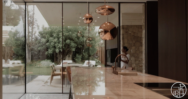 厨房另一侧设有大面积的玻璃幕墙,为室内带来了足够的采光,也使空间更加开阔▽