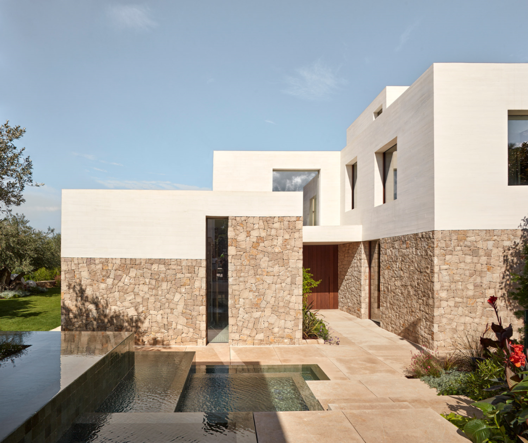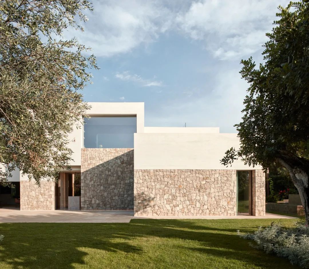 在整个立面设计中,采用白色混凝土与石材饰面组合,营造明亮、温暖的氛围。