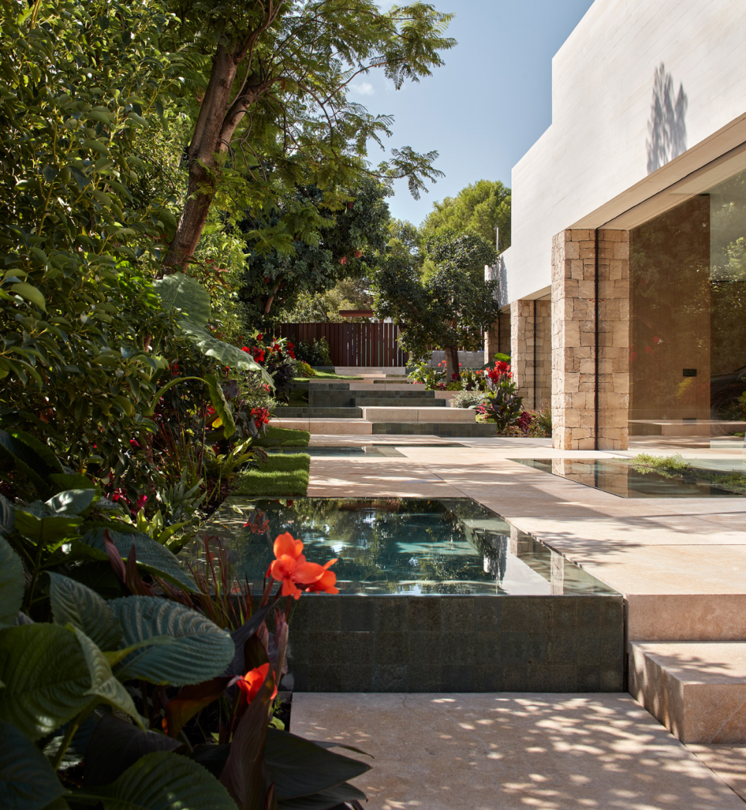 大树、花卉、草坪以及水景的布置,不仅仅使房间和景观之间产生了关联,也让整个居家环境都变得更加活力起来▽