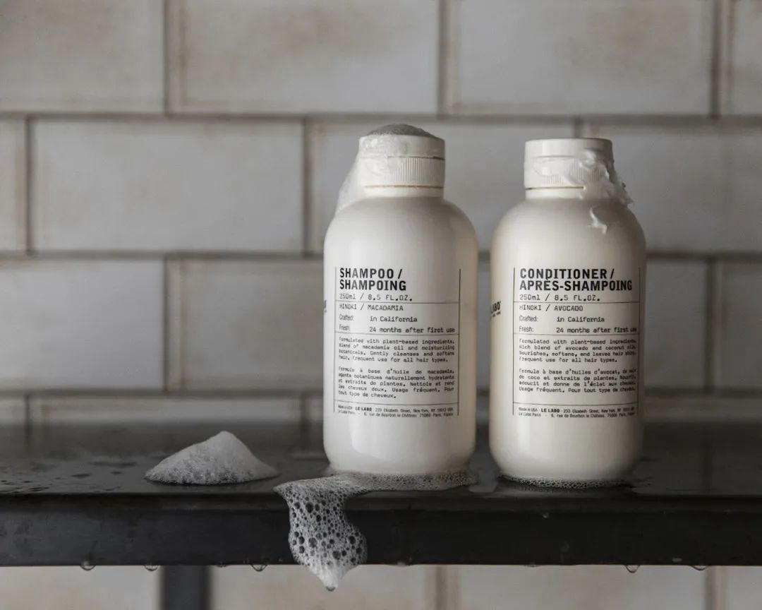 LE LABO的SHAMPOO & CONDITIONER均出自加利佛尼亚的工厂,无硅油的低沫配方与护发素间隔使用也能避免单一洗发水使用长时间之后的清洁无力感。
