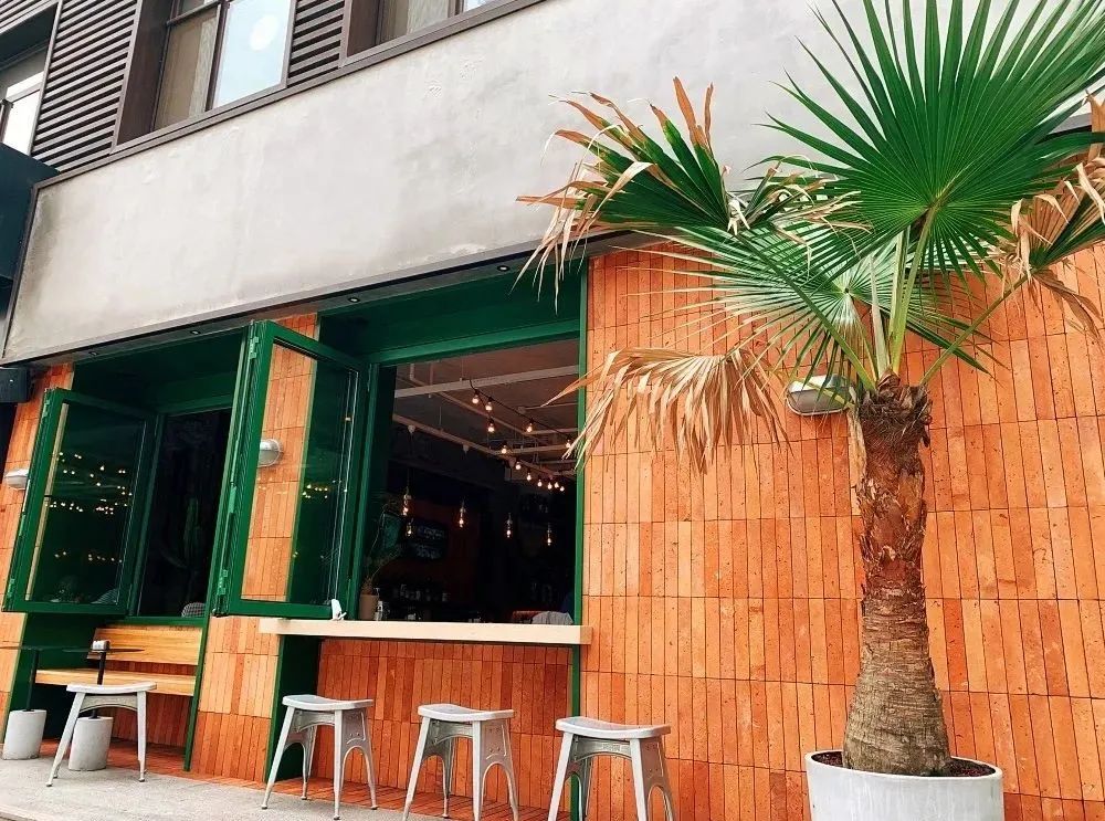 店铺以白色为基调,配上红砖墙,和充足的阳光一起无比和谐,是那种一进店就会被吸引的咖啡馆。位置大多以两人为主,空间区域划分合理,室内不同形态的座椅很好地照顾到了爱宠人士与怕宠物人士之间的关系。