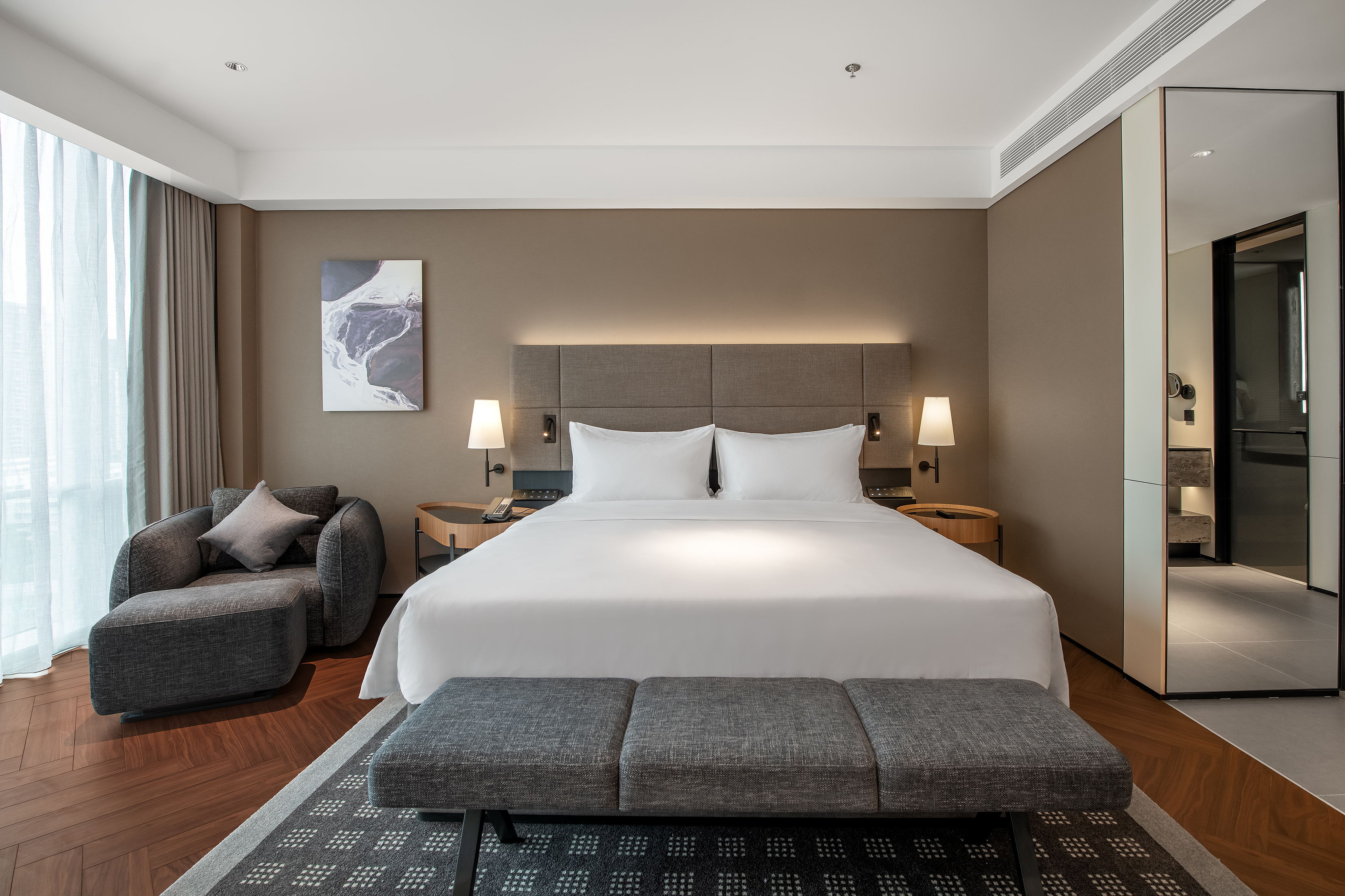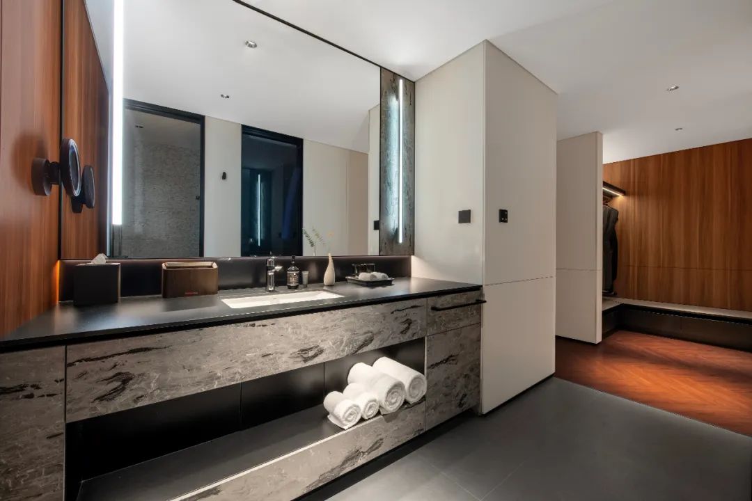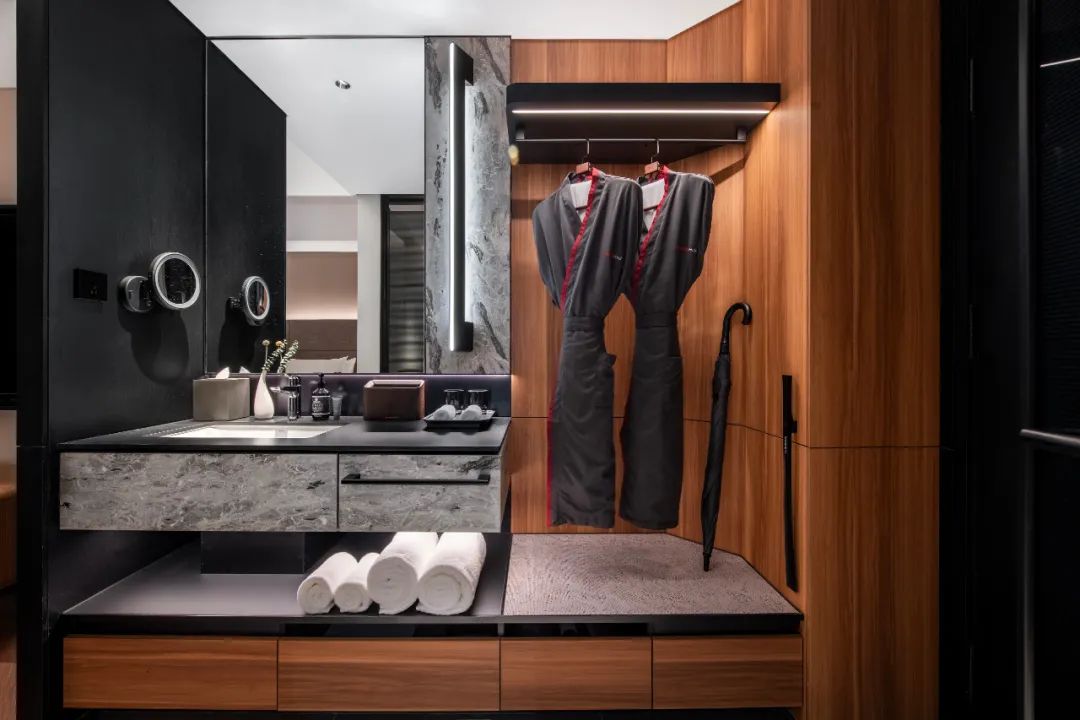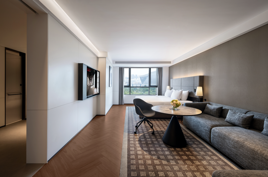此外,为了缓解大家旅途的疲劳,房间内不仅配备了新风系统、智能控制设备,同时还特别设置了免费迷你吧,并且提供厚浪灰被啤酒和冷凝啤酒杯,一口饮下瞬间让身心变得轻松且惬意。