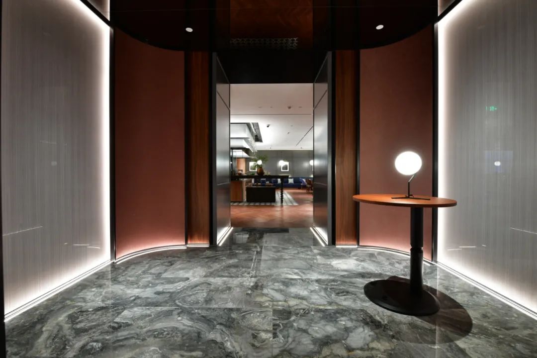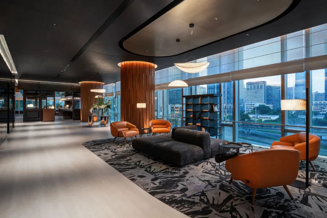 例如成都环球中心城际酒店,位于高新区天府一街,距离环球中心、SKP、桂湖生态公园等均在5公里之内。即便去到双流国际机场也不到10公里,能够有效保证差旅人士的效率和体验需求,其它「IntercityHotel城际酒店」也是同样的规格和标准,至于隐藏其中的包豪斯基因则体现在细节之中。