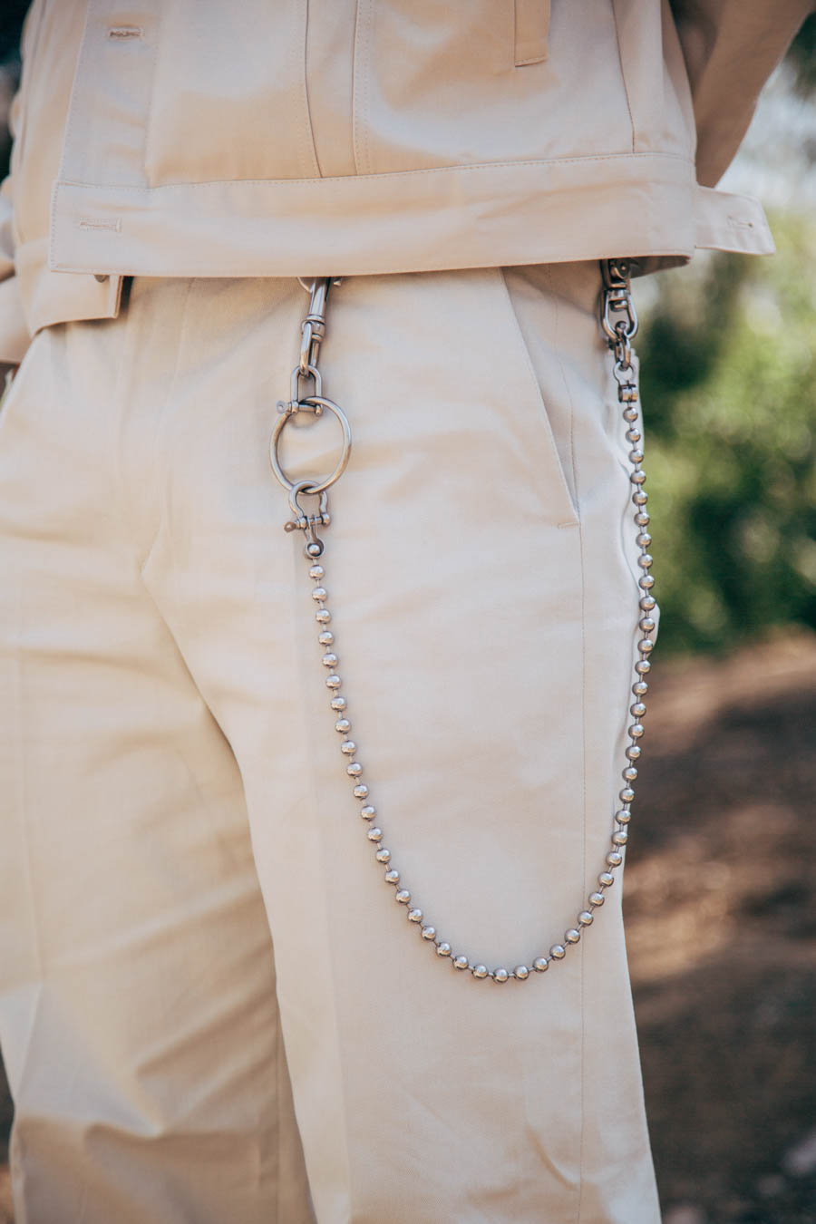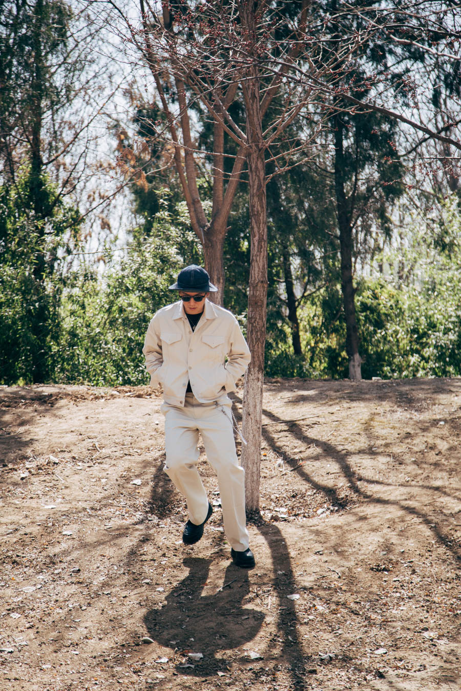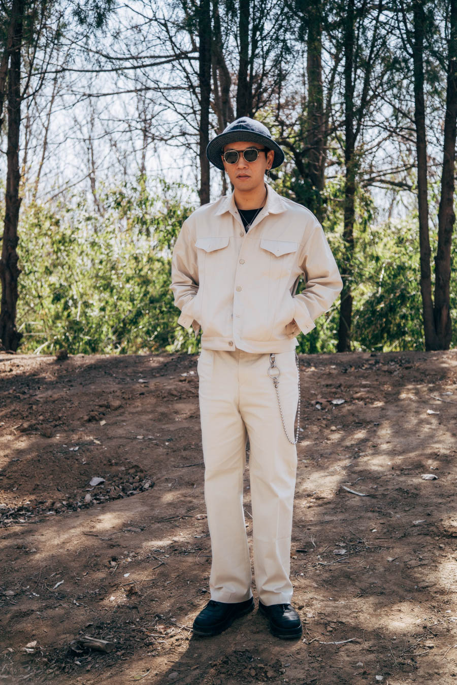 比如我的这套白色套装,它本是时装品牌,但牛仔宽檐军帽我则选择了orslow这样偏经典味的品牌,再加上一点痞子味的银饰挂链,项链与耳饰点缀,可以说是不同元素,气质,背景文化单品的综合体。