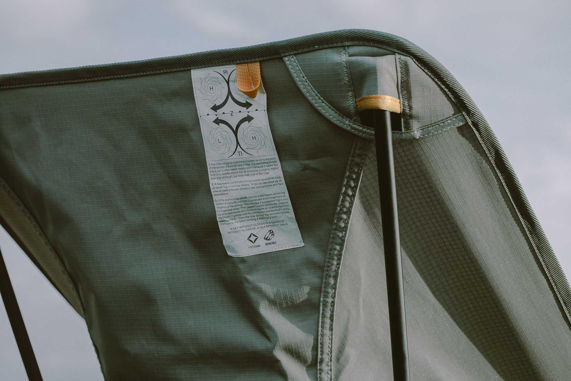 在收纳包装及单品本身上,可看见 INVINCIBLE 以气流概念设计的龙卷风标志,此标志将贯穿未来INVINCIBLE 户外相关系列,也表达了品牌走向户外的决心。 此外,这次也与产品上两股势均力敌的气流相遇所形成的滞留锋气候图加以相呼应,象征此次 INVINCIBLE 与 Helinox 强强联手的精彩合作。