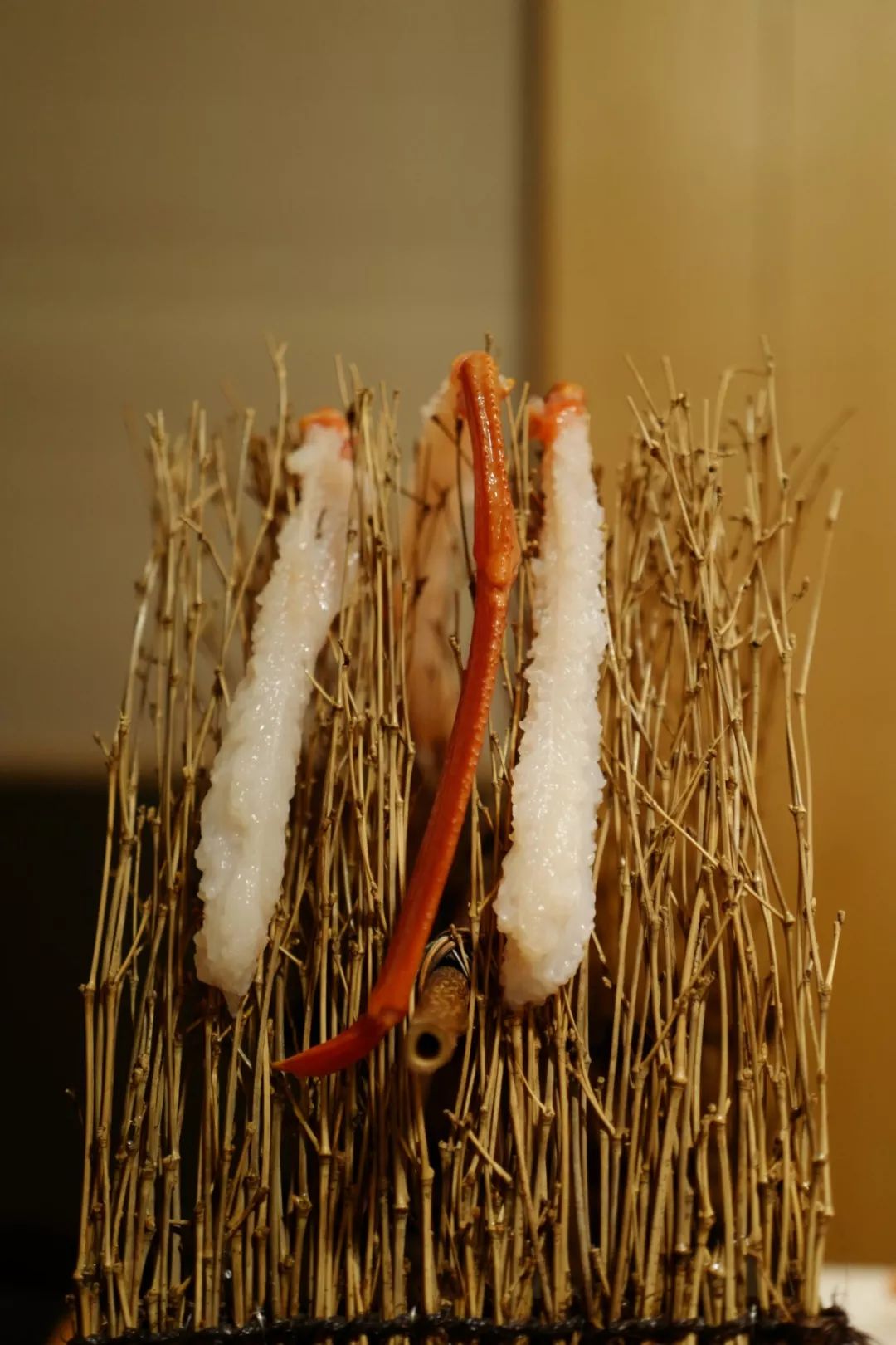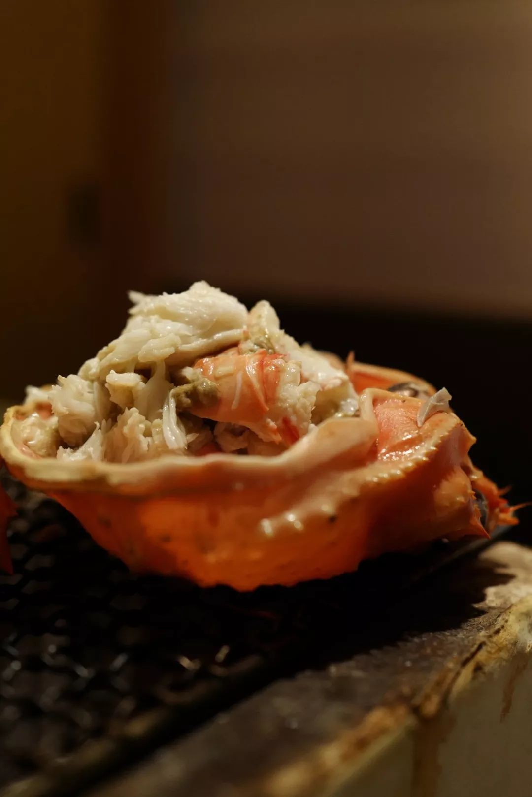 蟹腿肉生吃,从活蟹上剔下到上桌不够五分钟,蟹肉呈现一种白菊盛开的纹理,轻蘸酱油嗦进嘴中,像是酒酿里的糯米般莹润,又清甜如山泉。乌麦!好甜!