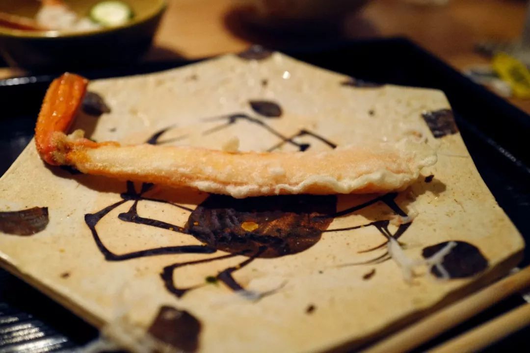 天妇罗是惊喜!在此之前,螃蟹的味道多落在一个"甜"字,做成炸物诱发更多香型。轻薄面衣下,蟹肉汁水充盈,在岩盐和白芝麻油的辅佐下,鲜味被激发的淋漓尽致。