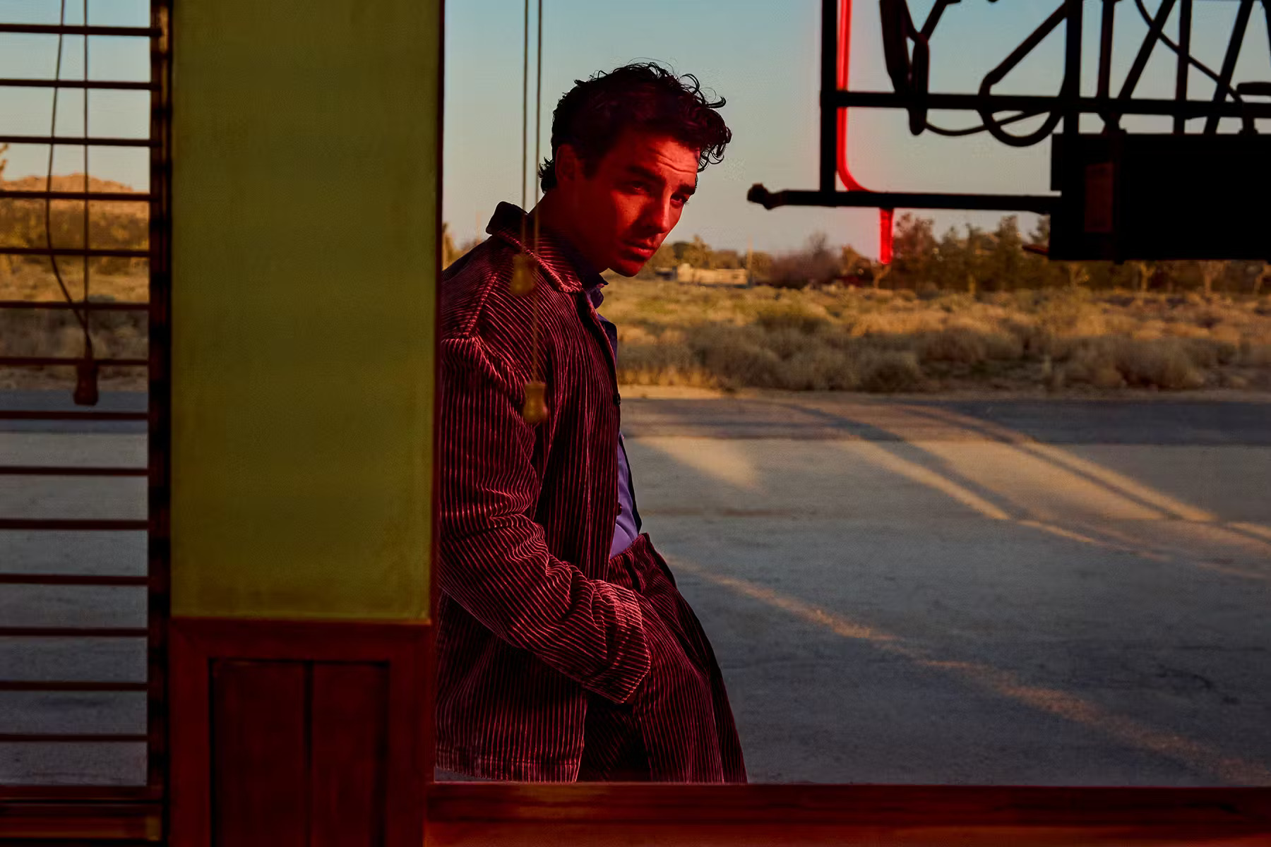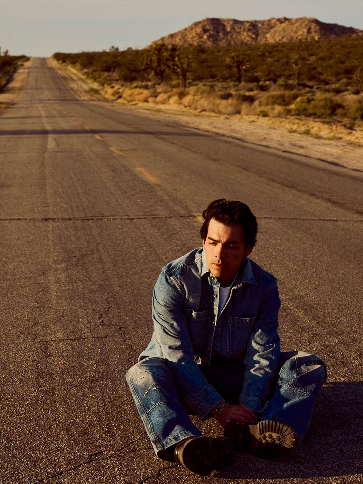 在上世纪 70 年代荒芜的西南部,Jonas 开着一辆迷人的海蓝宝石色软顶跑车……这样的场景,没有谁可以抗拒。狂野的西部魅力和美式复古风与 Jonas 的气质完美契合,给人一种《年少轻狂》里的马修·麦康纳和《好莱坞往事》中的布拉德·皮特的感觉。