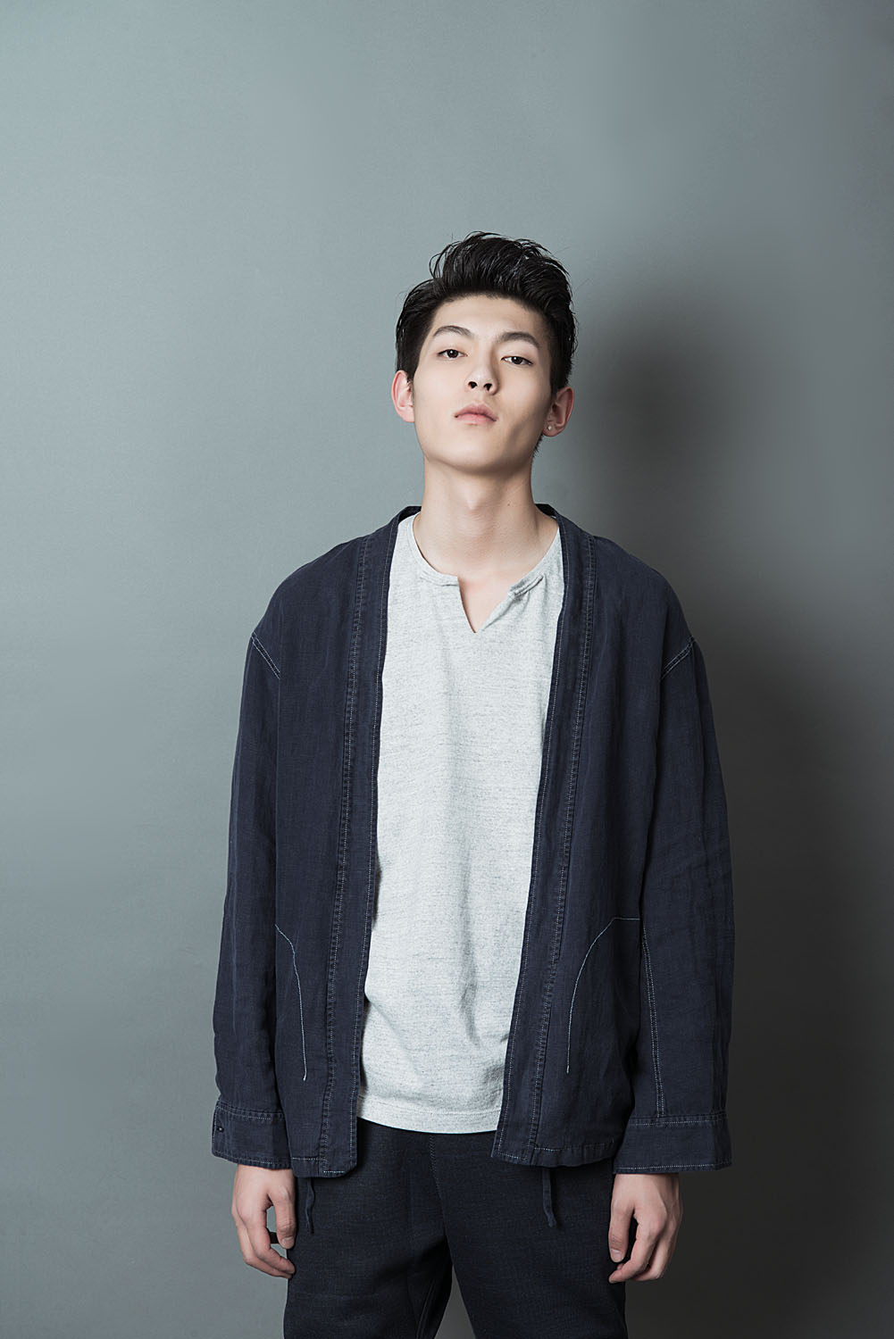 将西装的立体剪裁与和服的圆形剪裁相结合,以人体力学为出发点,打造出更适合都市出行的全新服饰,上身效果不但不会累赘,更显利落。