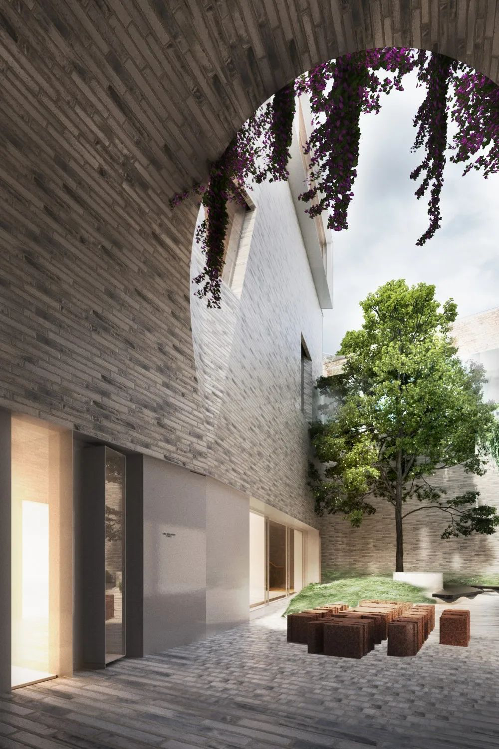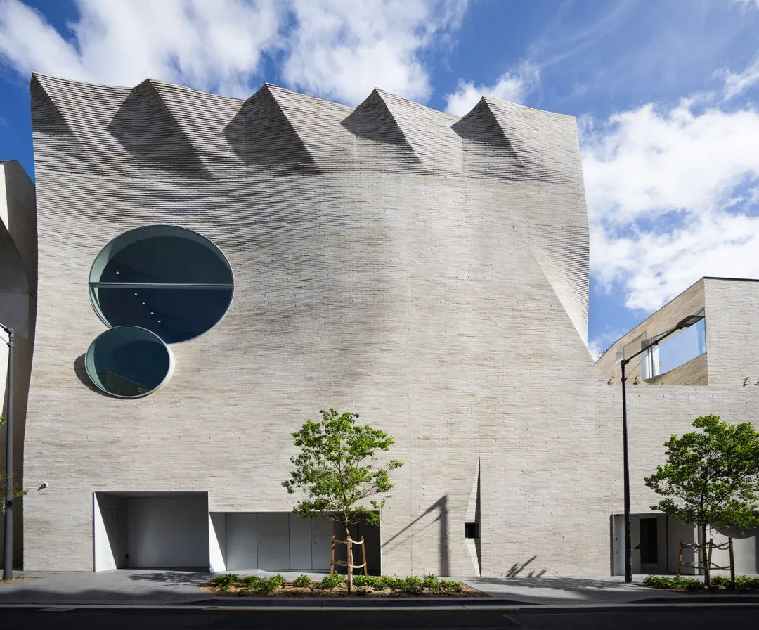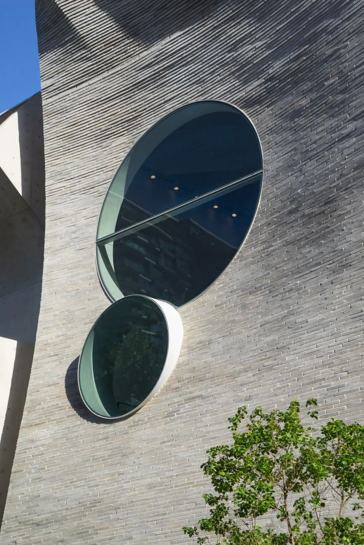 曾经这里是个仓库,在经历了火灾后重建而成,如同凤凰涅槃、浴火重生般,给人们带来惊喜。5 层高的混凝土框架建有几面倾斜的墙,在复合的弯曲墙体中还留有8m高的双圆形窗户,结构外覆盖着砖砌立面,为施工也带来不小的挑战。