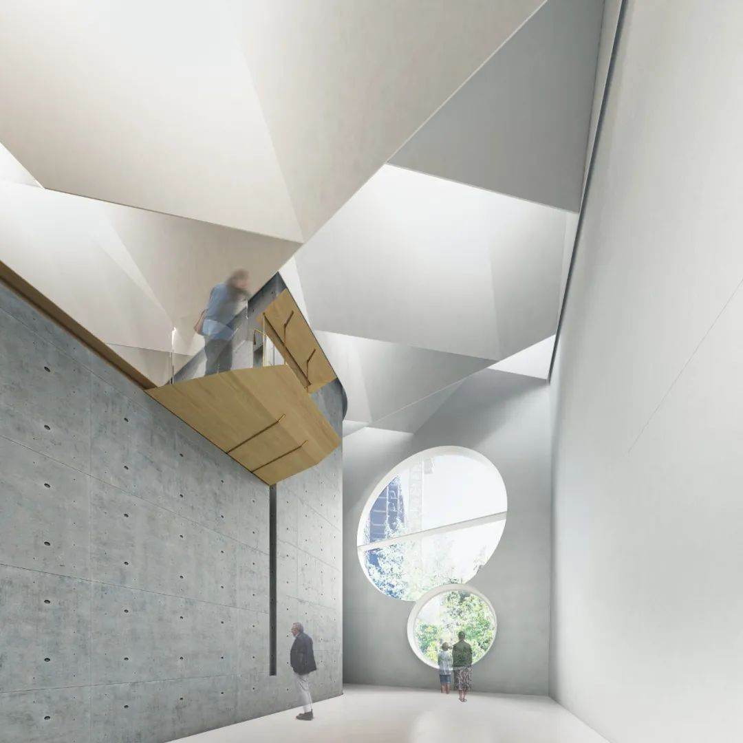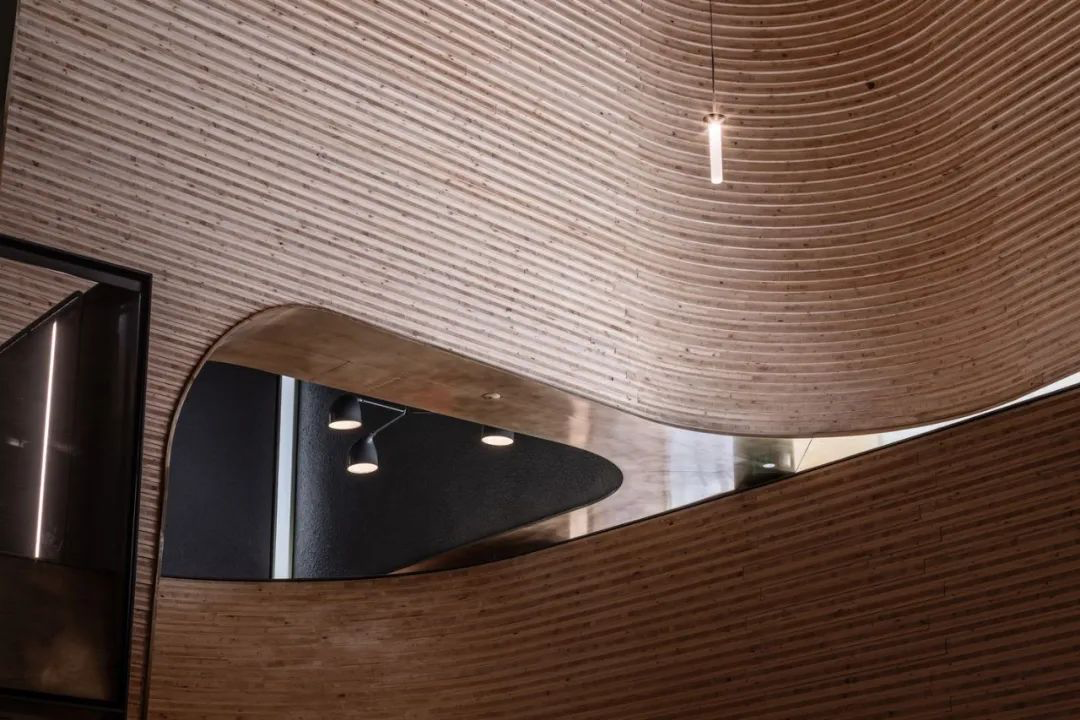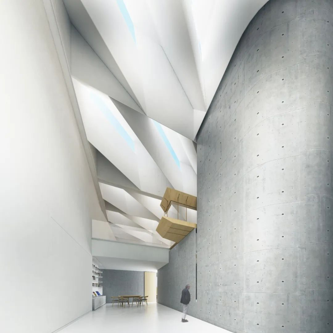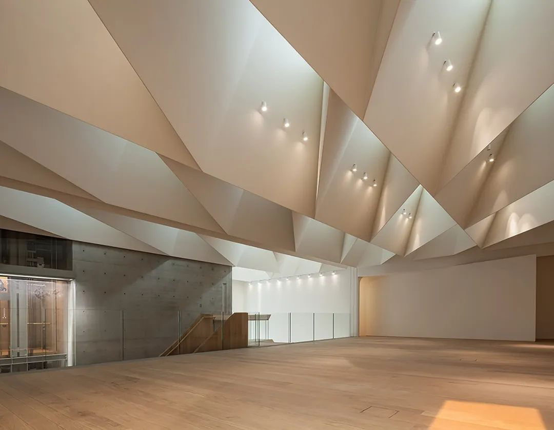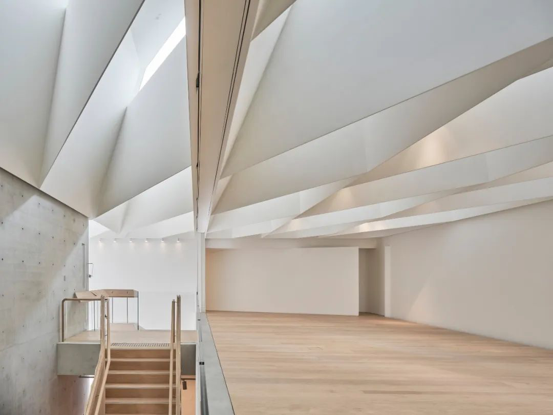 相比表演空间,画廊的线条则更加硬朗。建筑师在底层的天花板留了许多空隙,在自然光线与灯光配合下,丝毫不显得沉闷。