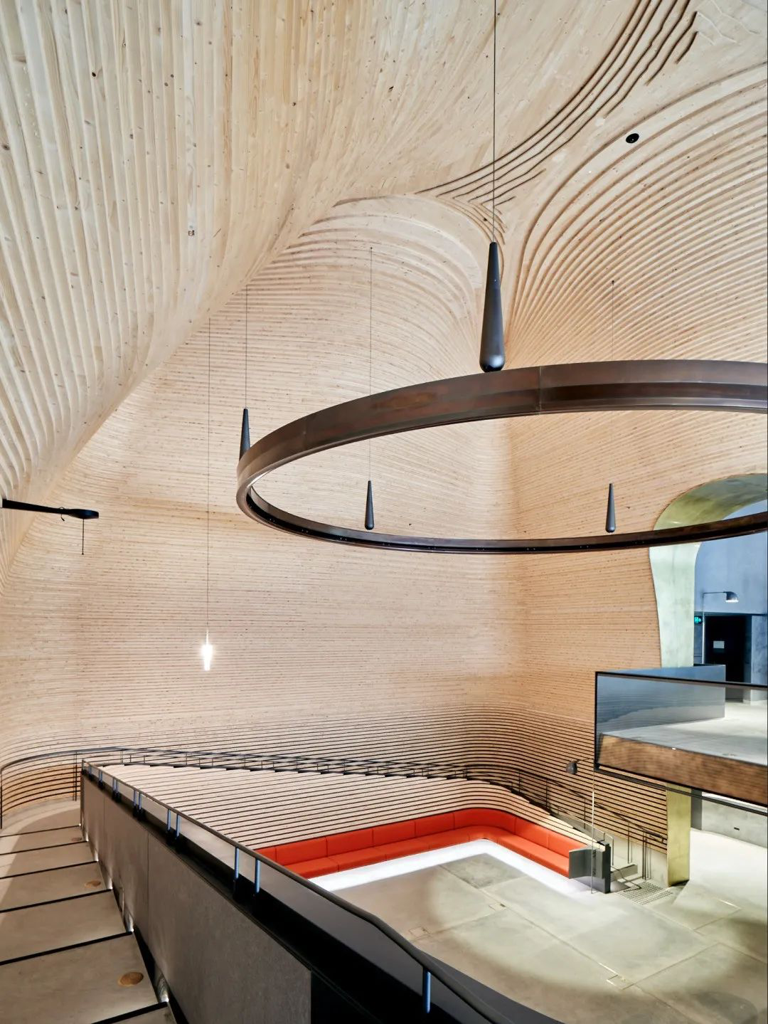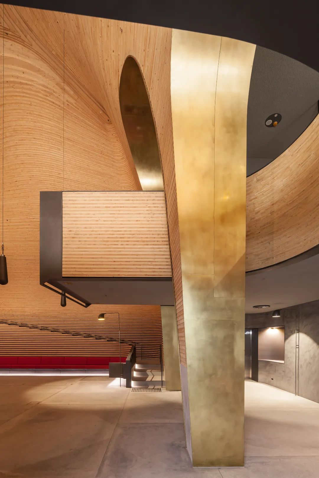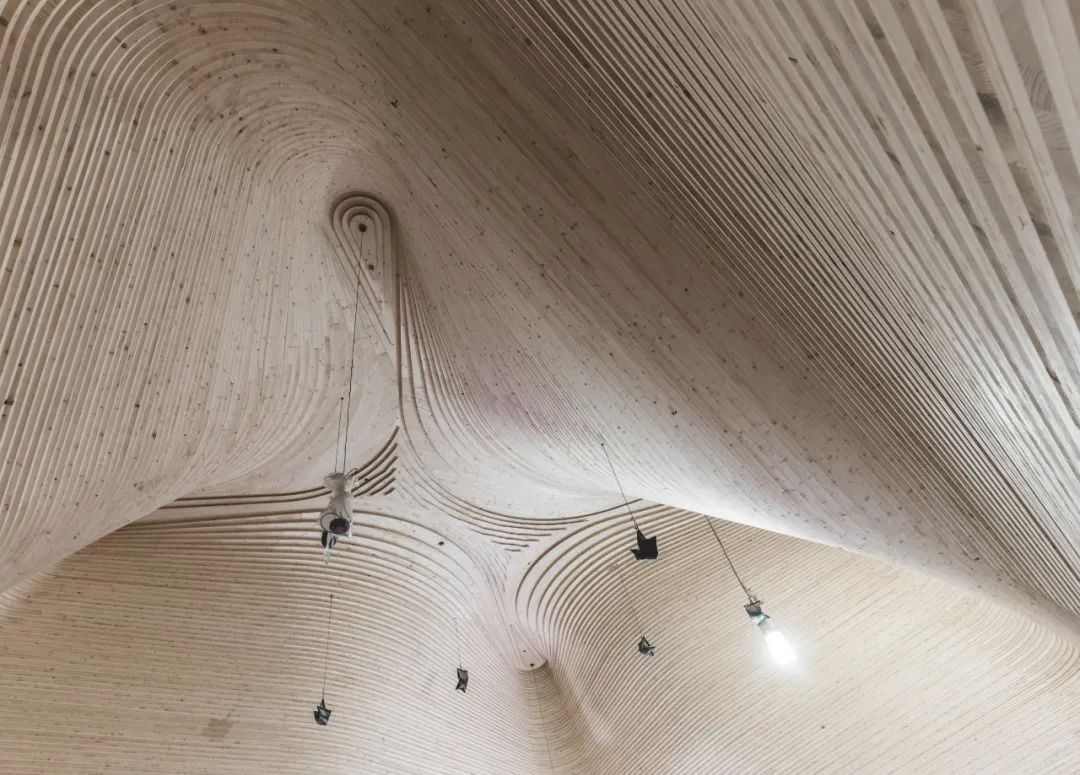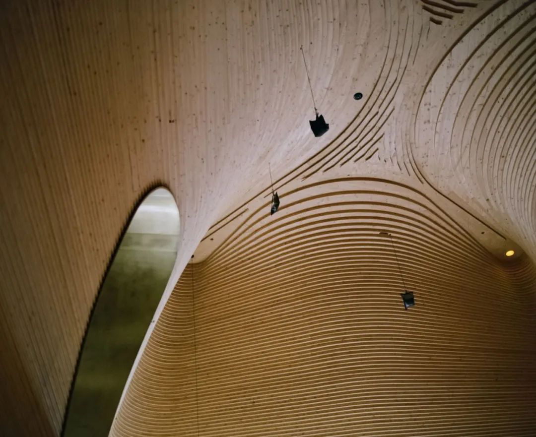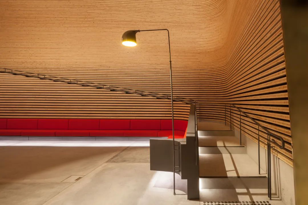 相比表演空间,画廊的线条则更加硬朗。建筑师在底层的天花板留了许多空隙,在自然光线与灯光配合下,丝毫不显得沉闷。