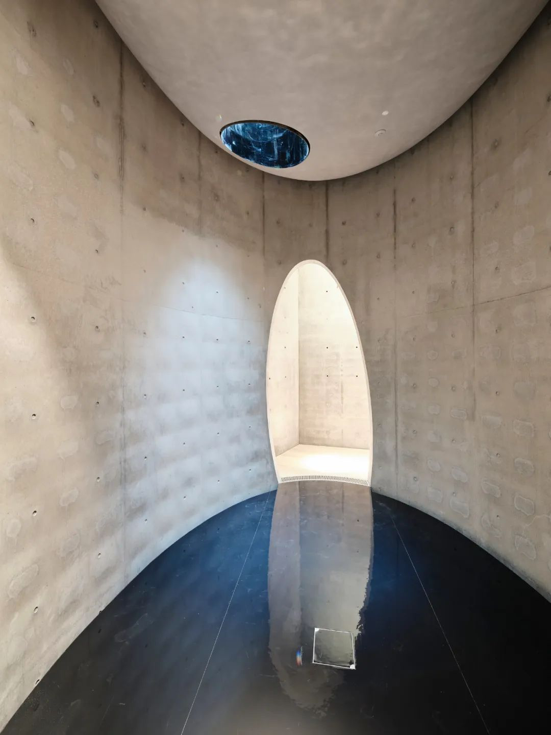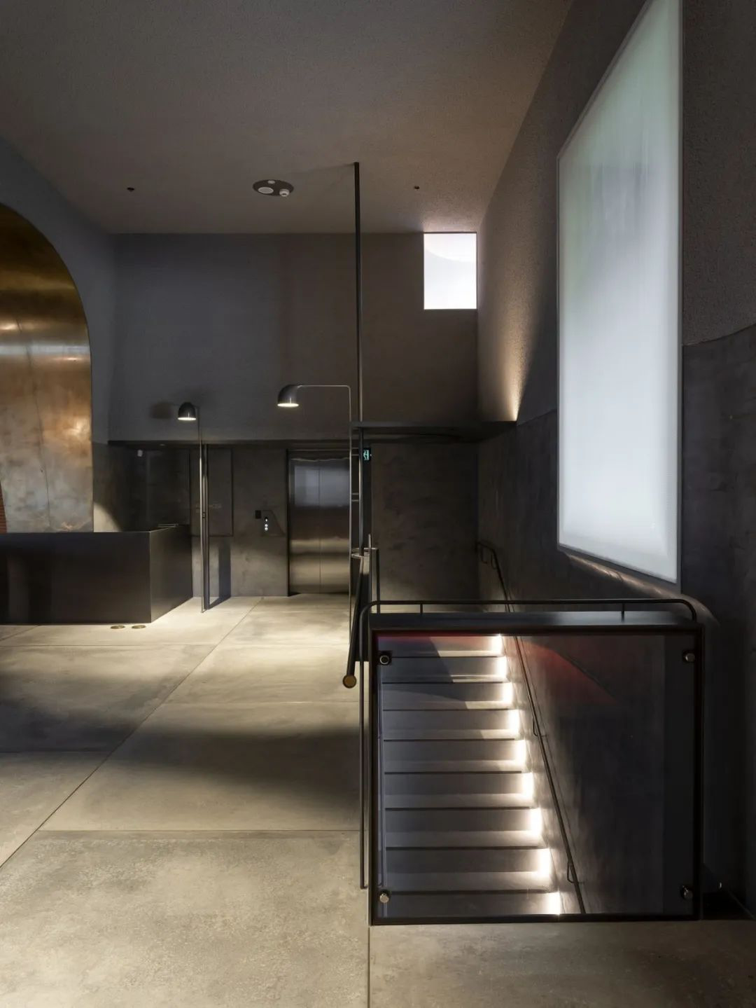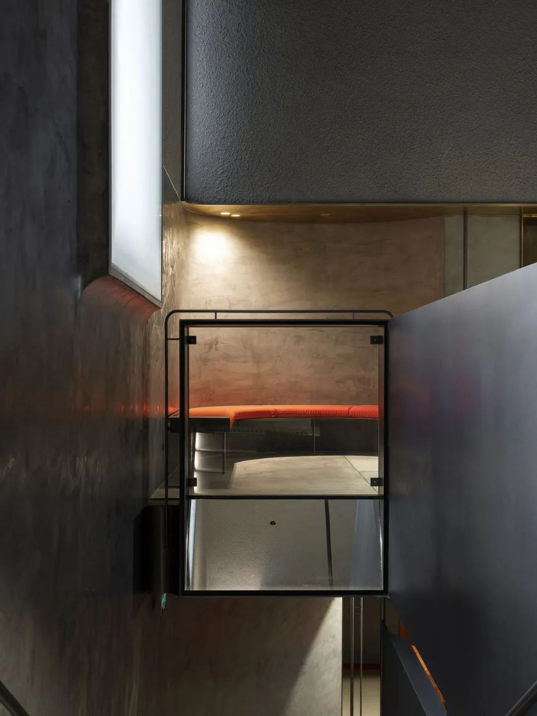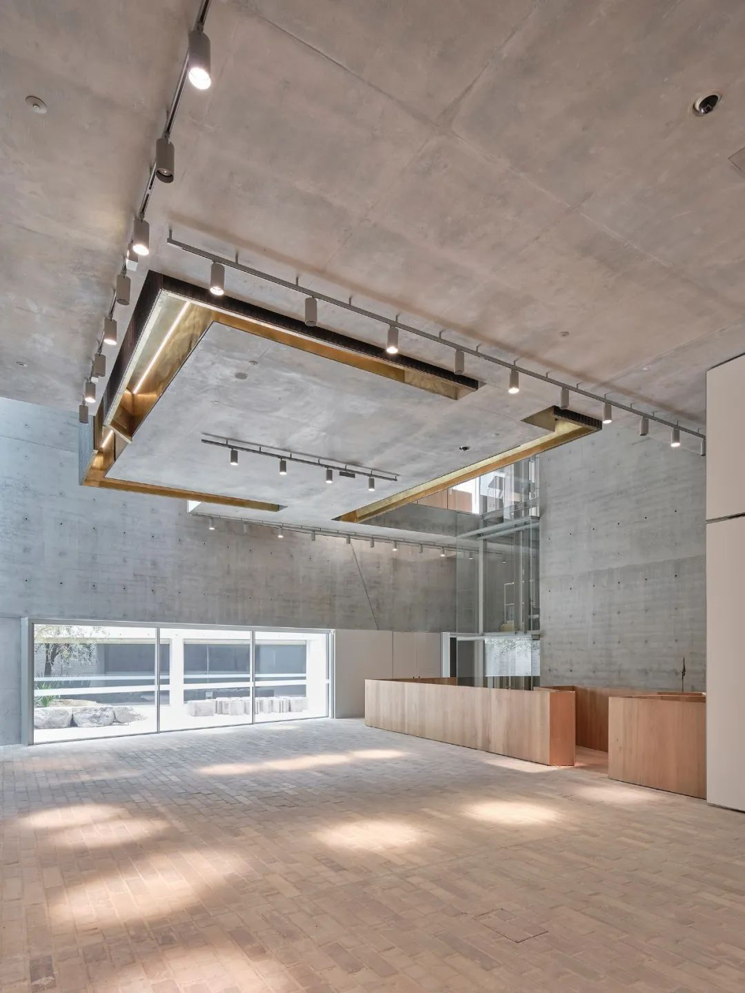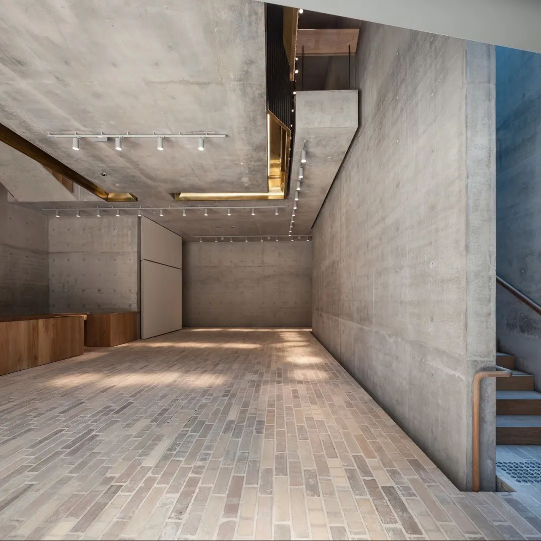 混凝土墙面和天花板,佐以玻璃、木材元素,十分通透。