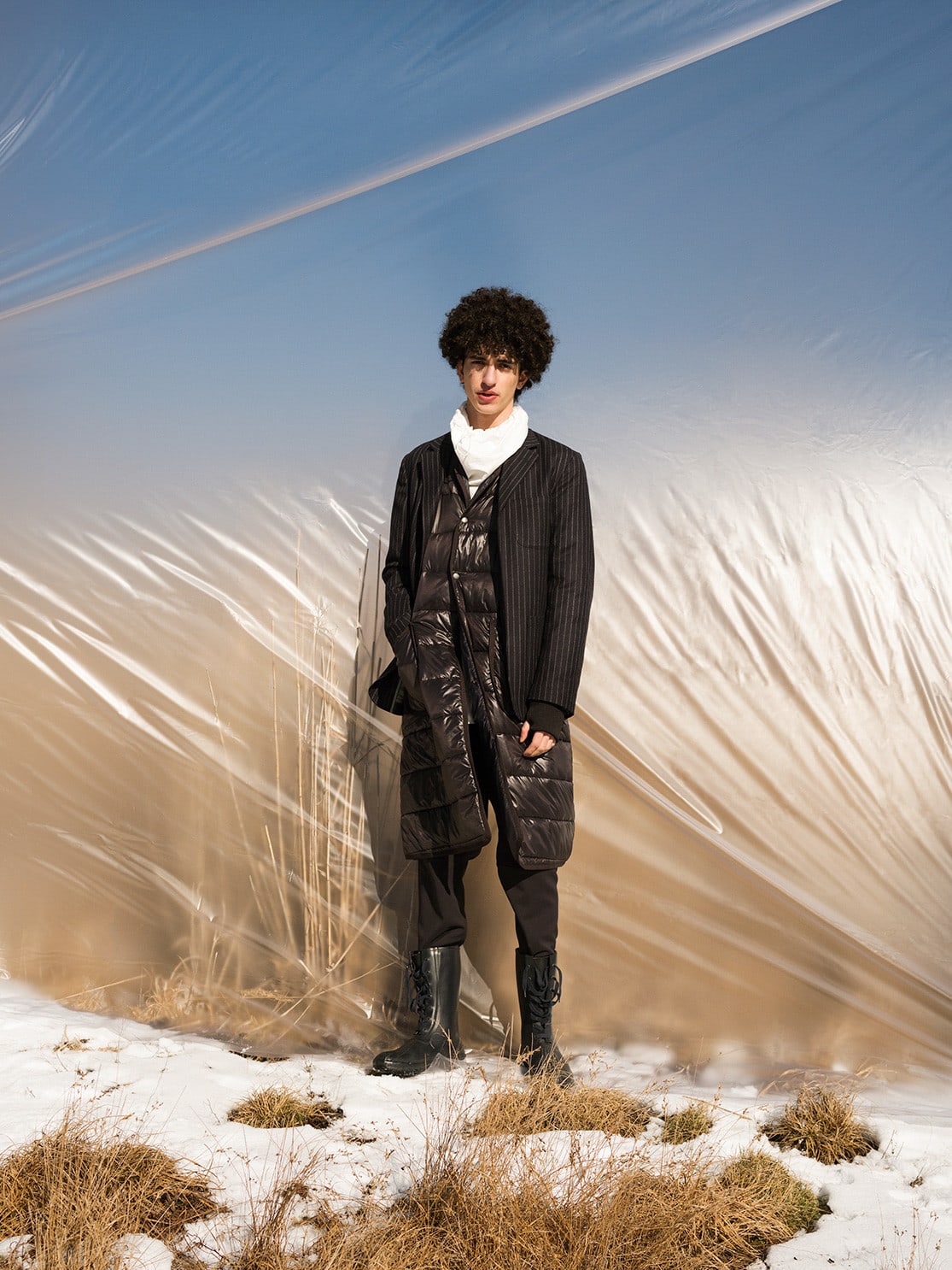 追求专业的ultimate 倡导登山者去享受攀登山峰这件事的本身,作为首次亮相的季节,ultimate 的秋冬阵容将“攀冰”作为主题,围绕这项户外极限运动推出不少技术性导向单品,诸如软硬壳裤装、双层大衣、保暖外套、软壳背心、连帽或全拉链式羊毛外套、高山帆布背包等。至于aspire ,结合“实用”与“美感”两大元素,强调服饰的图案与轮廓之美,以及着用的舒适体验,代表性单品包括羊毛粗呢外套、两穿羊毛套衫、附带背包的宽松风衣等。