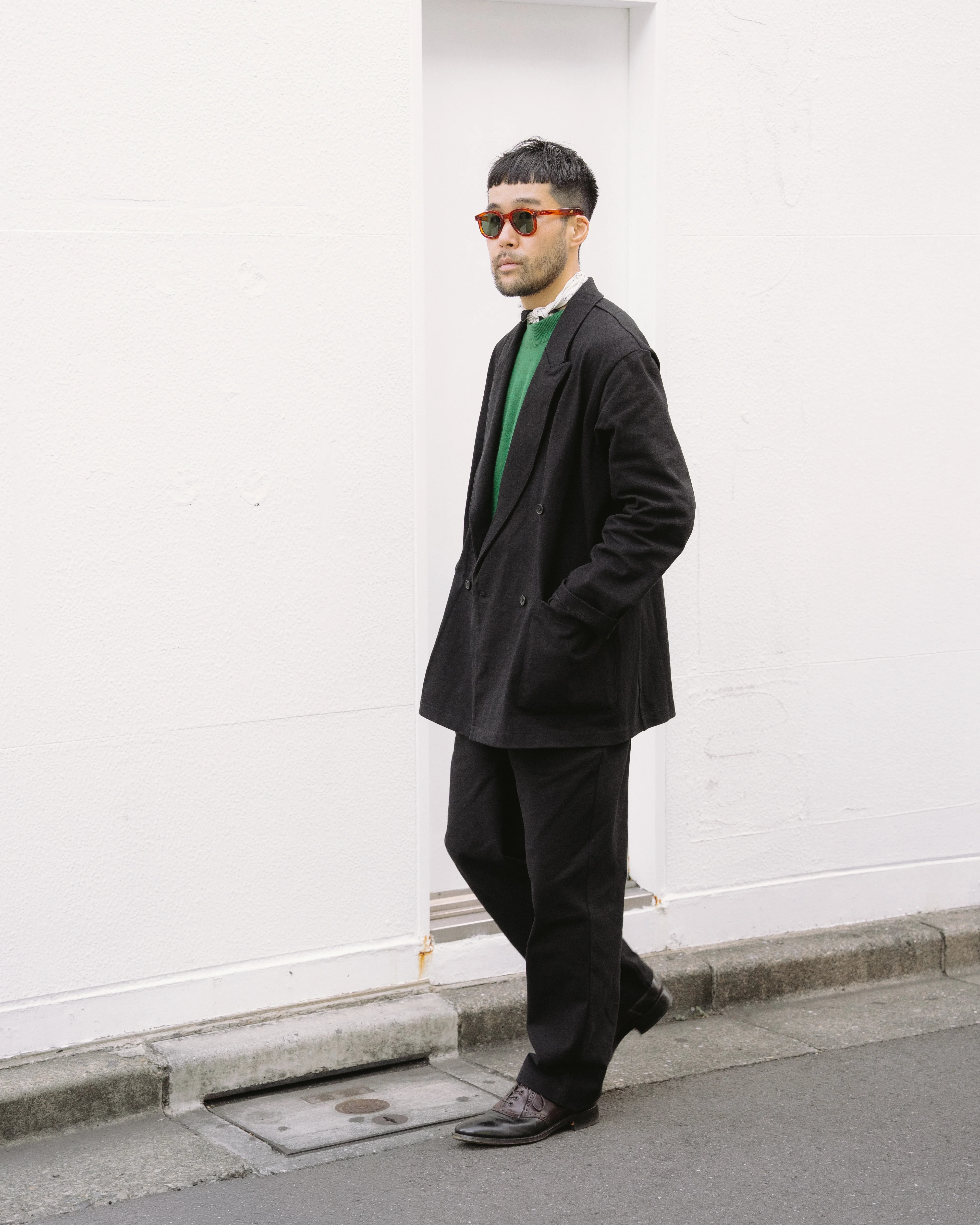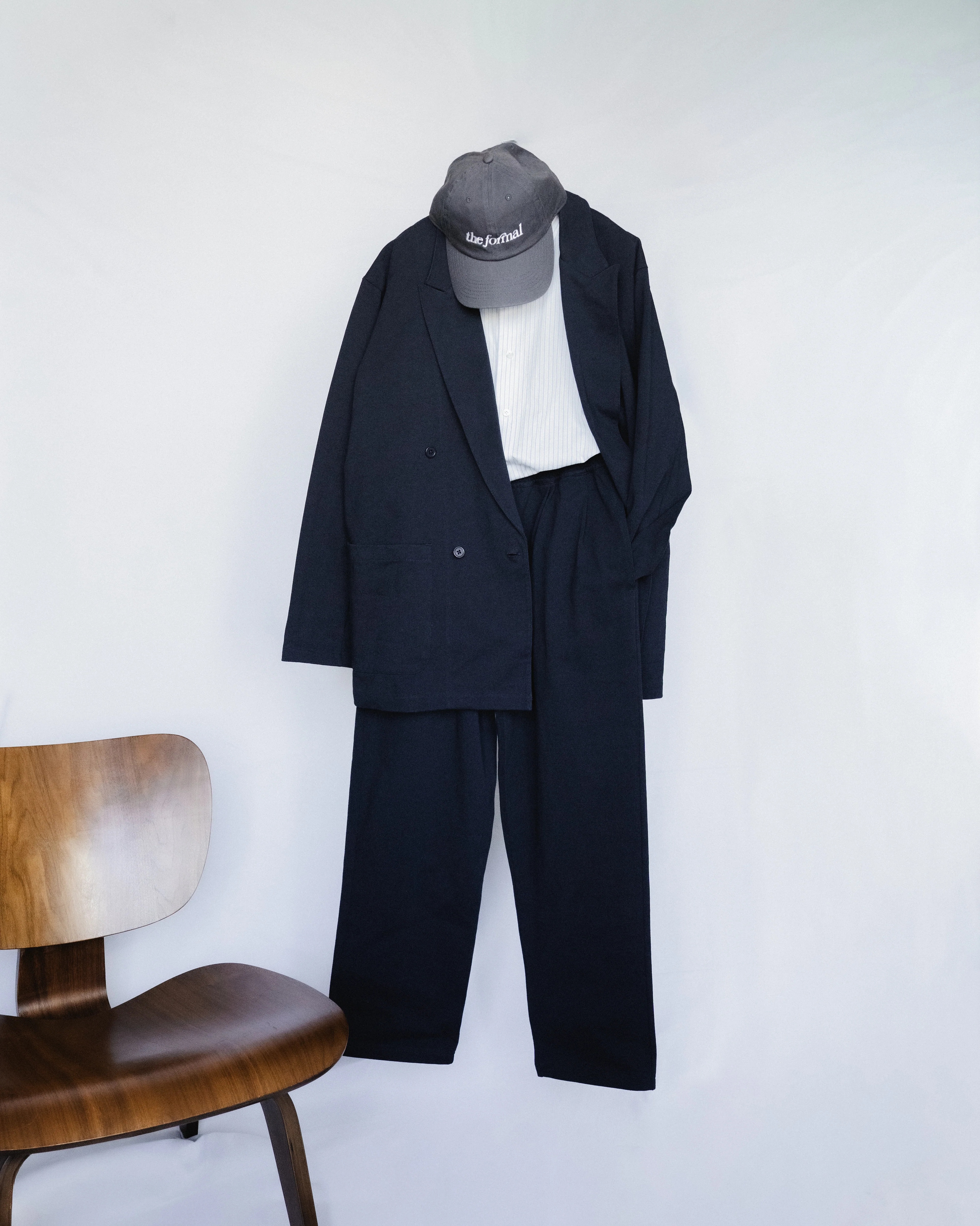 乍看之下这套西装似乎显得比较传统,搭载宽大翻领设计,造型复古,可与牛津鞋和 Polo 衫完美搭配,谁能想到它的主体仅仅是 12 盎司单面针织 T 恤面料(不过是会比普通 Fruit of the Loom T 恤更精细、更厚实的织造面料)?这款运动正装套装在最初样品制作完成后,已历经四次设计和修改,糅合运动套装的功能性和经典正装外套的优雅美学,旨在轻松打破正式和休闲场合的界限。