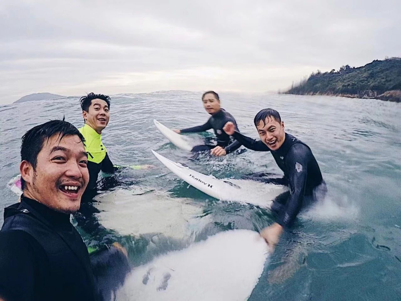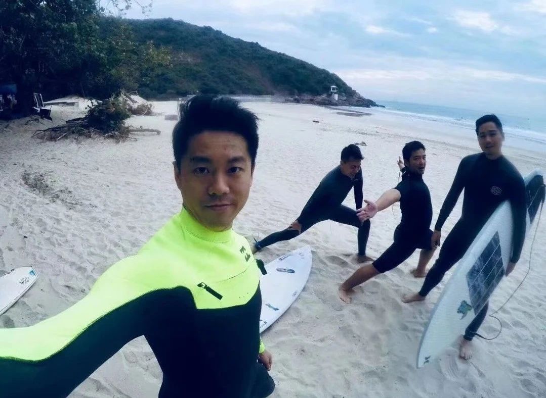 △ Kenneth(左一)与朋友们在香港冲浪