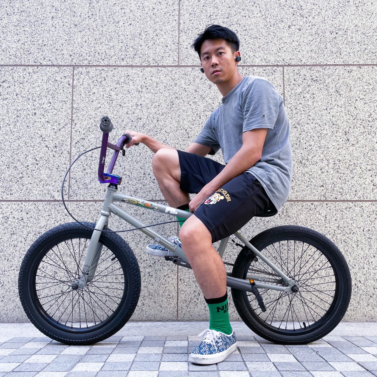 有时候仅仅一个动作就需要练习很长时间,但是 Kenneth 没有想过放弃,他半开玩笑地说:“可能因为伤得还不够重吧”。面对高难度的挑战,不放弃 BMX 的原因有很多。BMX 的外型既不像普通自行车,又有别于公路车和山地车,除了车轮偏小,轮胎更宽也是它的一大特点。Kenneth 表示,第一眼看到宽轮胎的 BMX 就被那满满的街头风所吸引,而更让他上瘾的是每次“因为冒险而成功完成花式动作带来的满足感”。